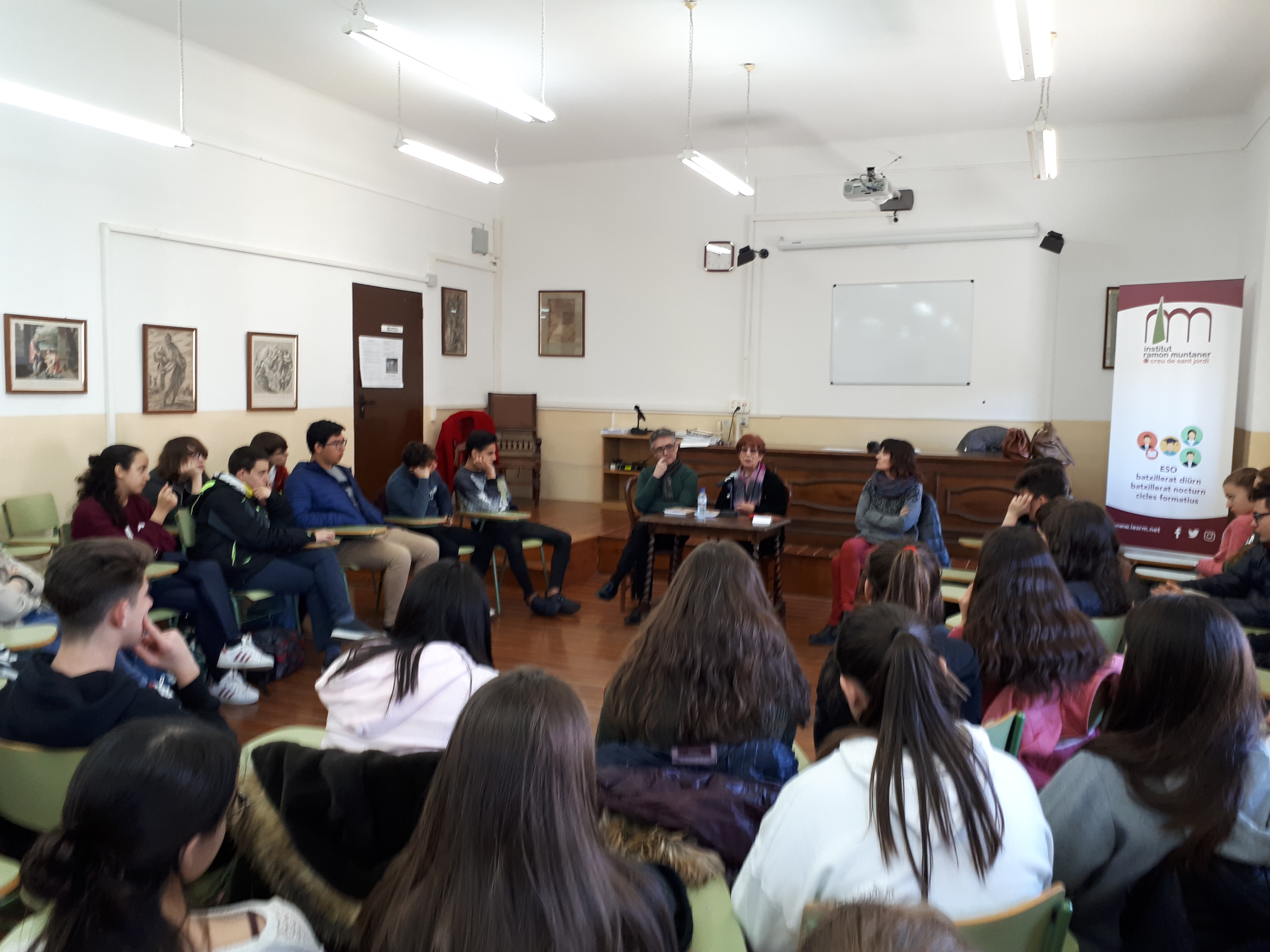 Mercè Jordà i Manel.la ha presentat avui a un grup d’alumnes de 4 ESO el seu llibre Aquella olor de pa: vivències d’una nena fins a l’adolescència (1933-1951).