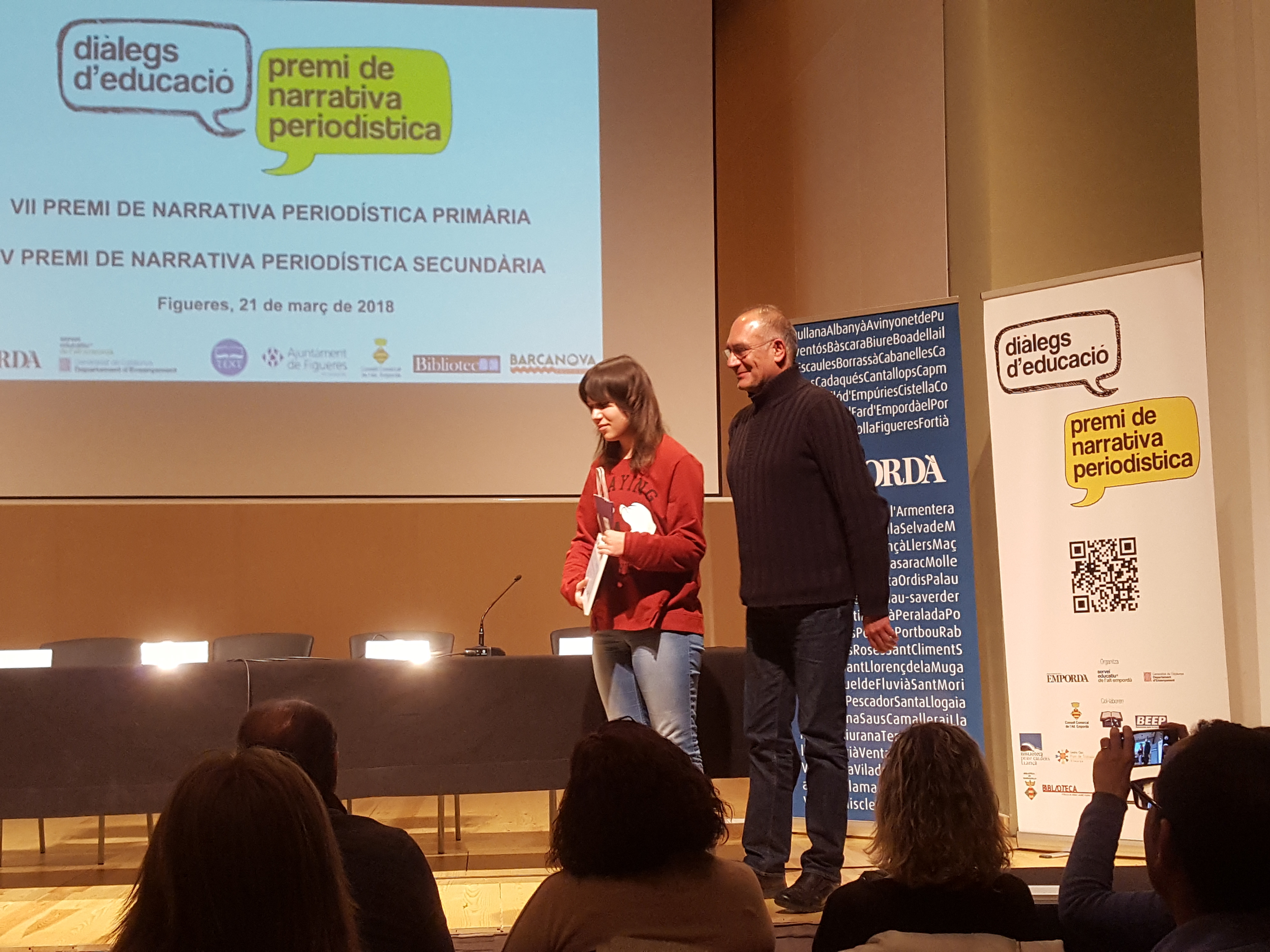 El passat dimecres 21 de març va tenir lloc l’acte de lliurament dels Premis de Narrativa Periodística, organitzats pel Setmanari de l’Alt Empordà i el Servei Educatiu de la comarca, en el qual l’alumna Carla Roig (3r ESO D) va obtenir el 2n premi i l’alumna Mariona Falgueras (3r ESO C) el primer accèsit.