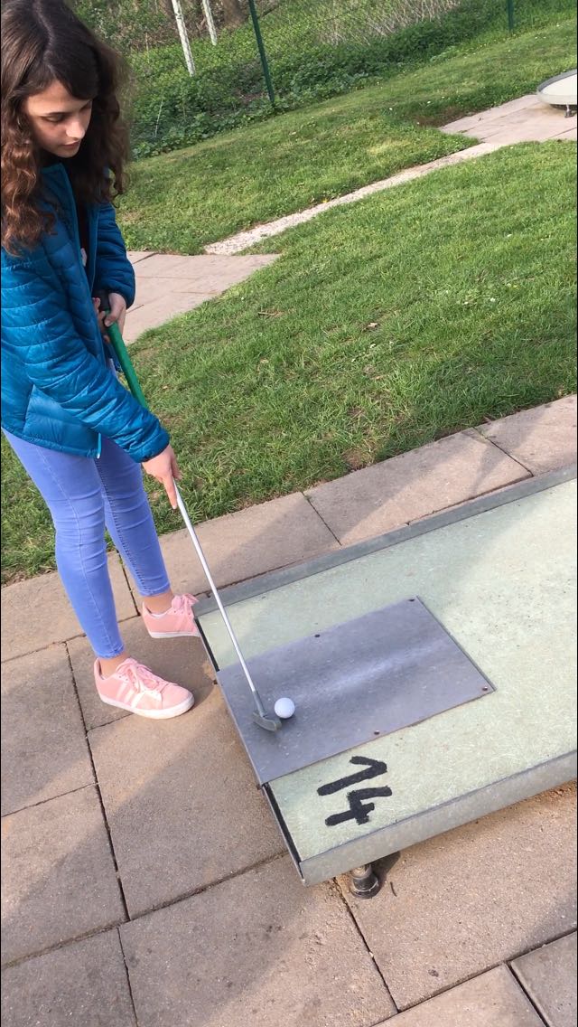 This morning we went to Düsseldorf again to have a picnic next to the river with our host families and the exchange student of the sister of Chiara (the German I had been all these days with). We ate some things that they had brought home and then we relaxed for a while. In the afternoon we went to play mini-golf with a few students and their exchange partners and then we went to eat a pizza, where Alba and Paula came too. When we finished eating we went to eat an ice cream and we talked for a while.