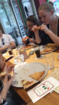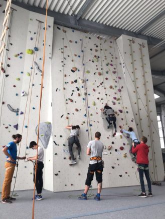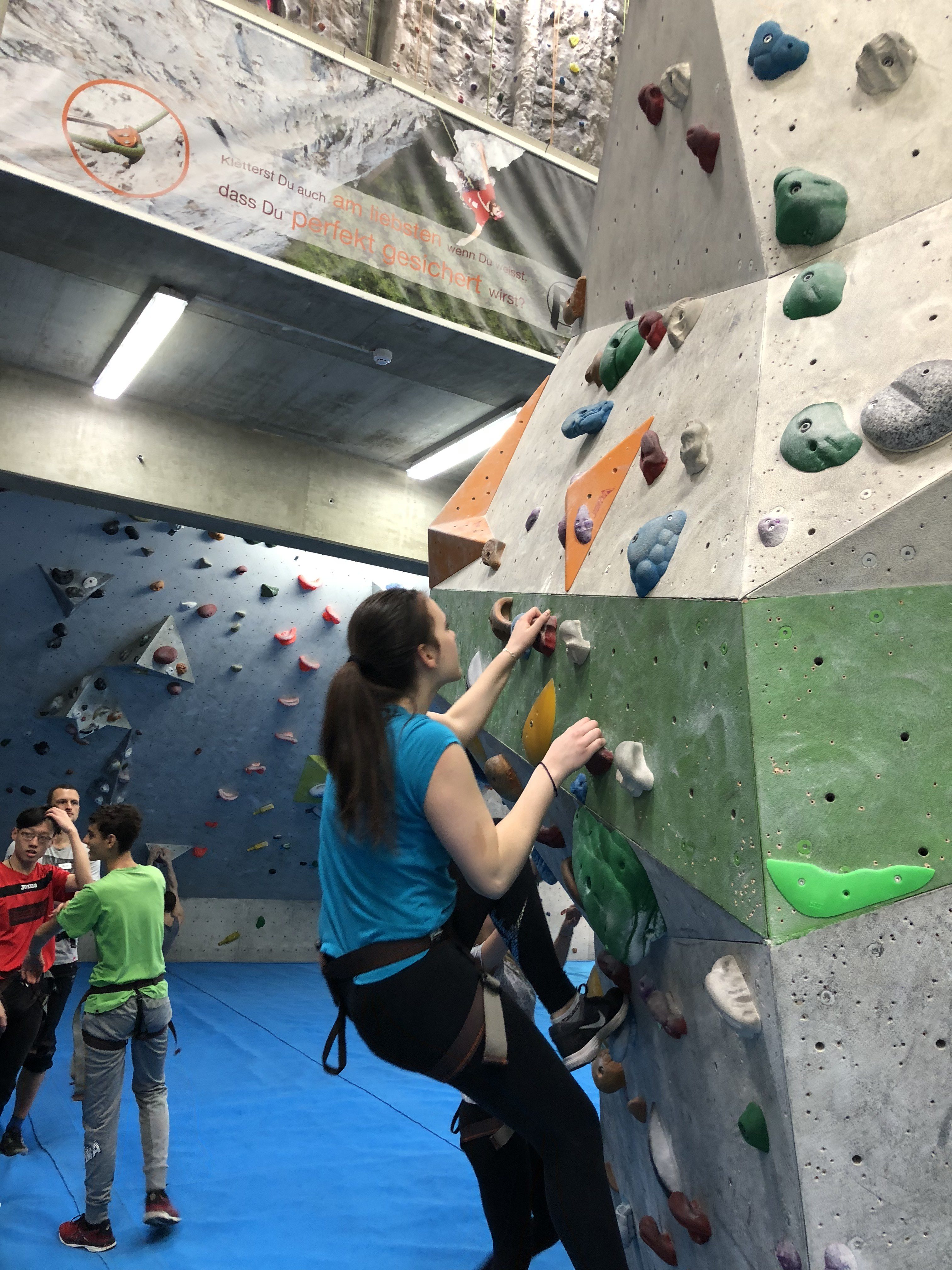 This has been the first day in Germany. At 8 o’clock we woked up and while Rebecca had a shower I have got dressed. Then we have had breakfast and we have made our lunch. At 8:55 we left home. And we met the other partners of the exchange at the hihg school’s cafe. Then the director made a speech while we ate a delicious breakfast. After that Alba, Rebecca, Paula, Ariadna, Chiara and I went on a high school tour. It had a ground floor and three extra floors. In the playground we saw a garbage bin with Alba written on it, so Alba is a “bin’s brand”. It wa very funny. At 12 o’clock we took a train to go to Köln to climb. At first no one wanted to climb but then we saw that it wasn’t as difficult as we thought. In the afternoon we ate an ice cream. After that, Rebecca, her cousin, her friend, and I went climbing. At first i was so afraid because there weren’t ropes to hold you. Finally we went home and we ate our dinner