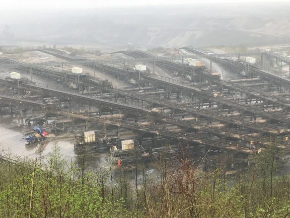 Dimecres ens vam aixecar amb energia per fer una primera intensa hora de classe. Després ens vam trobar tots a l’entrada de l’institut per agafar un minibus per anar a visitar un edifici on ens van explicar com funciona l’extracció de carbó per aconseguir energia elèctrica, es treu el carbó amb màquines molt grans, el seleccionen i amb cintes transportadores porten la quantitat necessària al lloc d’arribada més proper perque no perdi l’aigua que contenia després de ser extret de la terra. Més tard ens van portar a visitar la maquinària i la mina en general per així entendre millor la funció d’aquest espai anomenat Tagebau Garzweiler