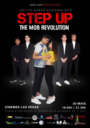 Després de molts mesos d’incertesa i gestions per tal d’aconseguir un espai, ens plau comunicar-vos que el proper dimecres 30 de maig, els alumnes de 4t d’ESO podran estrenar el musical STEP UP. THE MOB REVOLUTION que porten preparant des de principis de curs.