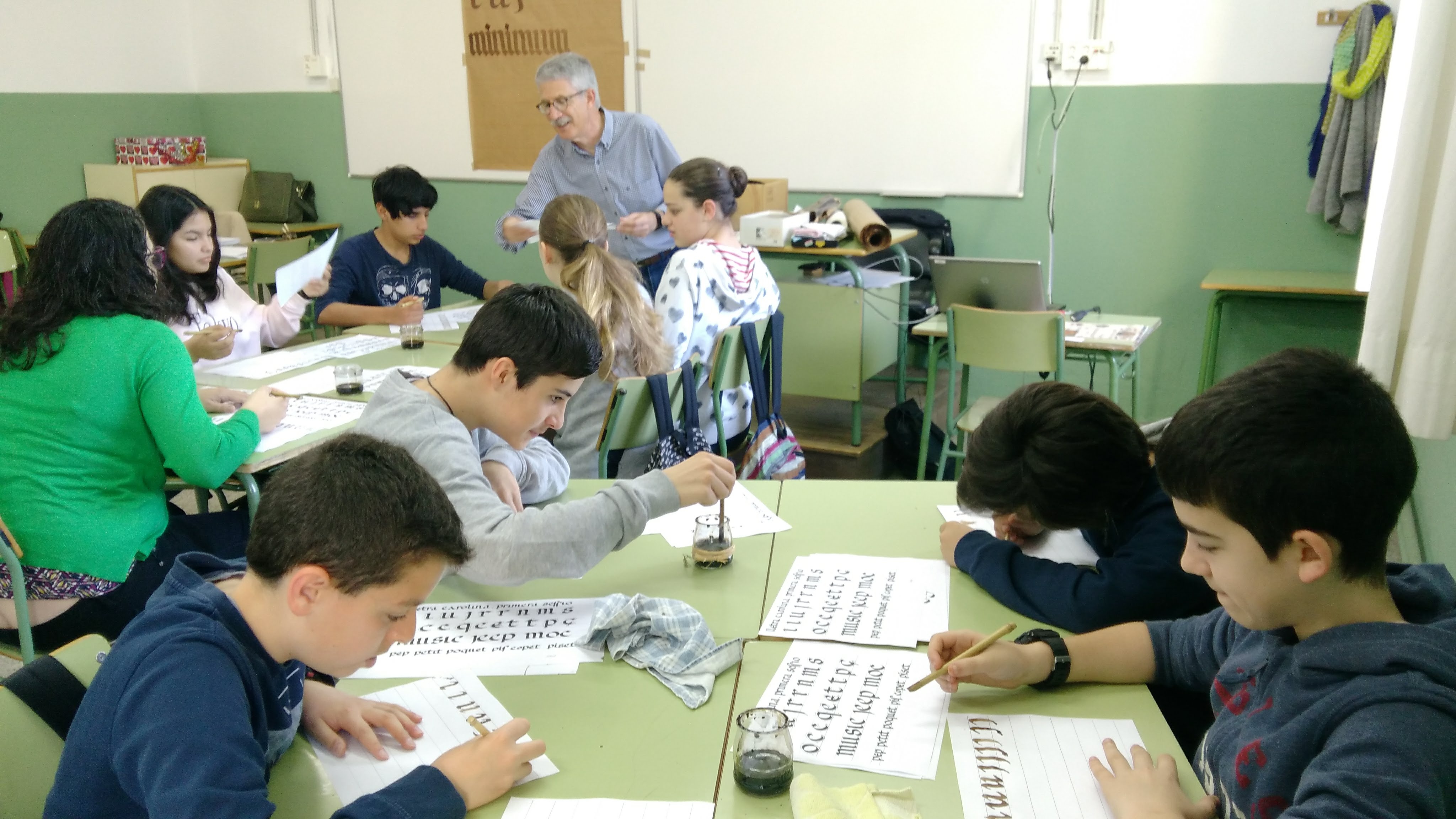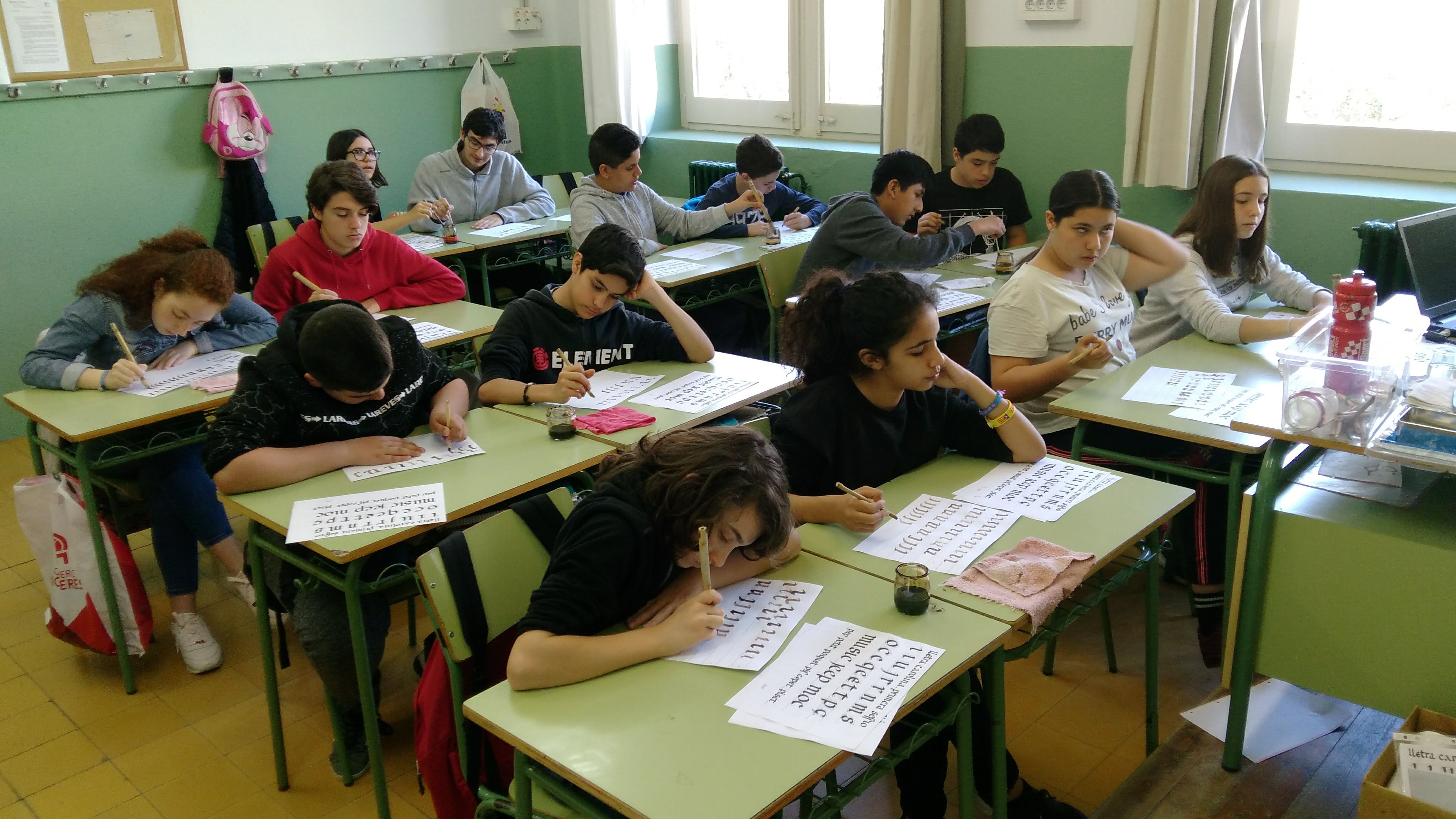 El dimecres 2 de maig, els alumnes de 2n B, C i D van fer un taller de dues hores de Cal·ligrafia medieval, impartit pel mestre Xavier Garcia.