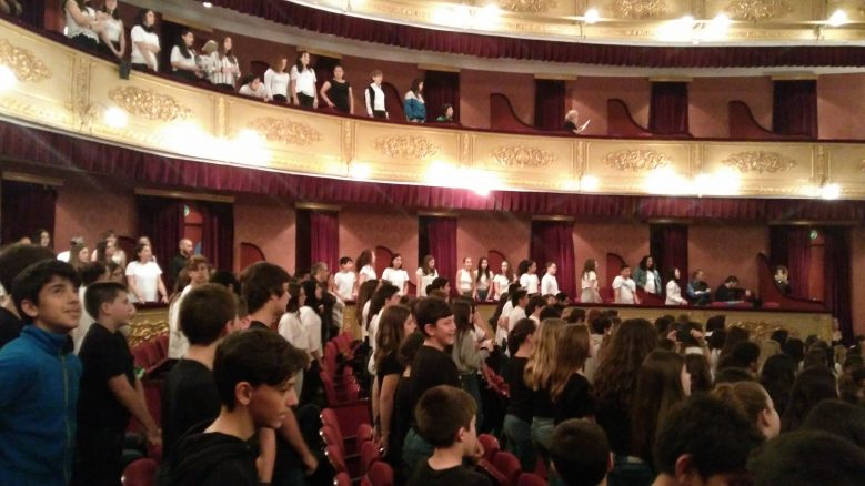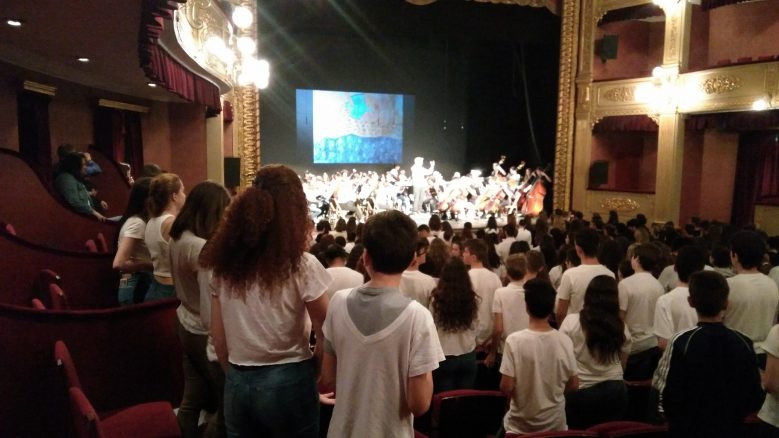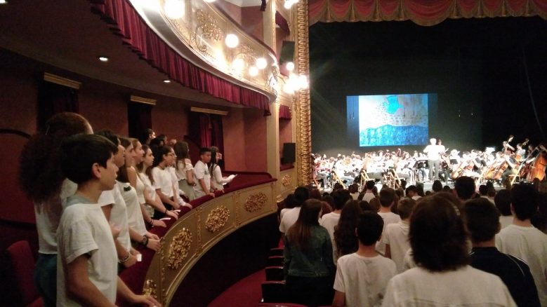 El día 16 de maig els alumnes de la Coral del Ramon Muntaner juntament amb els alumnes de l’Institut Alexandre Deulofeu i l’Institut Olivar Gran vam anar a la Trobada de corals de secundària que es feia a Girona, al Teatre municipal.