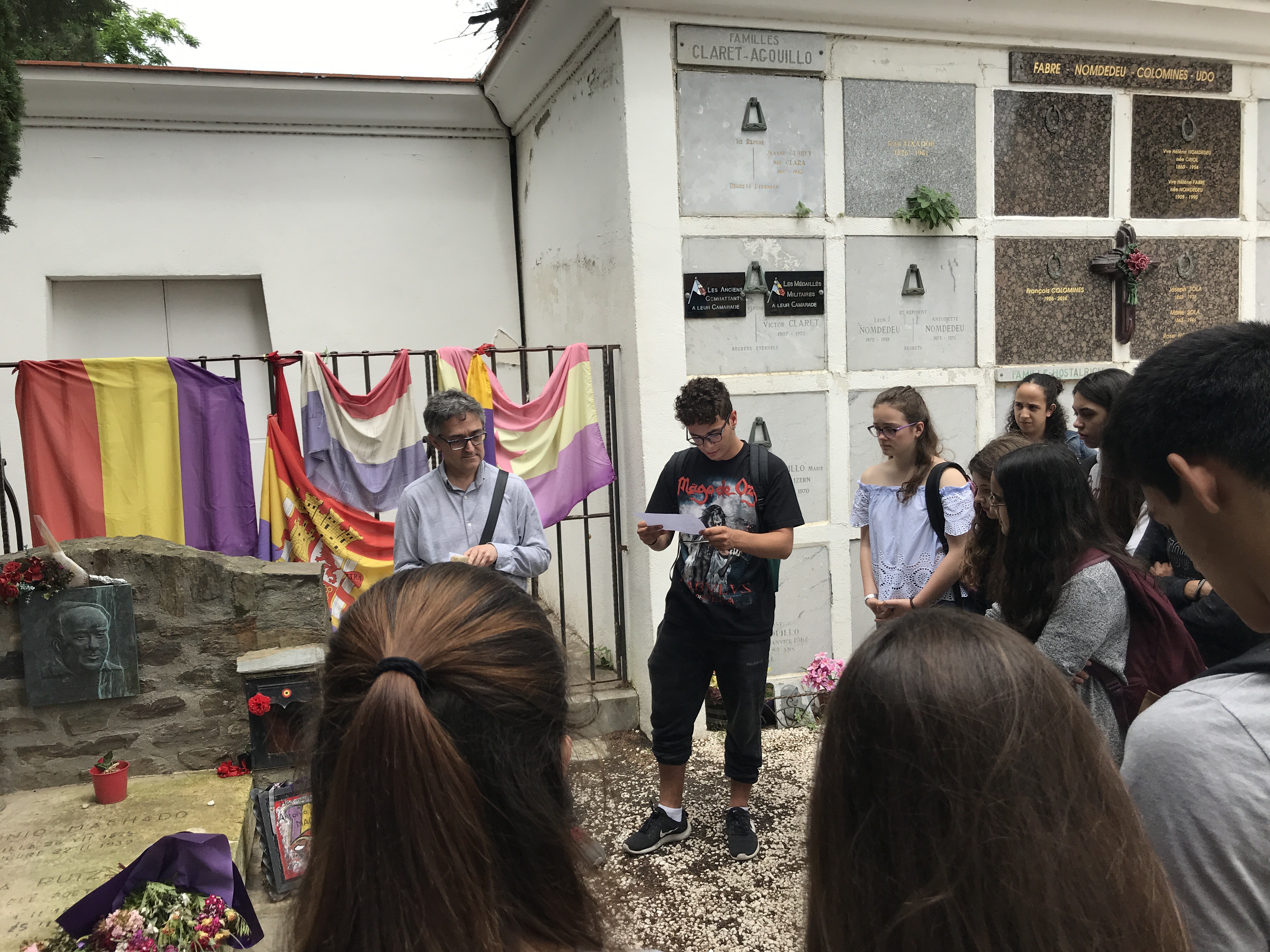 En primer lloc van visitar el Memorial de Rivesaltes i després van anar fins a Cotlliure per fer un petit homenatge al poeta Antonio Machado, enterrat al cementiri del poble. Aquesta activitat interdisciplinar no només ha servit de colofó d’un projecte didàctic, sinó que, a més, ha permès als alumnes reflexionar sobre les guerres i els refugiats, un tema malauradament de màxima actualitat.
