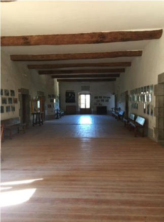 Als inicis del llibre, quan en Matias i la Mila arriben a l’esperada ermita, els rep un pastor, el qual presentarà la nova llar a la protagonista. Al llarg d’aquesta visita guiada en mans d’en Gaietà, se’ns mostra en primer pla, una gran sala principal, ampla i allargada, que al seus cantons hi té diferents compartiments. El primer que se’ns descriu, és la cuina; amb les seves finestres, els seus colors apagats, i sobre tot, l’aigüera. També, se’ns comenta l’existència d’una sala-menjador, bastant grossa i amb una gran taula, a més a més, de tres habitacions més, que exercien la funció de dormitoris. Tots aquests elements els hem pogut percebre al llarg de la visita a l’ermita, i ens ha sorprès la interpretació que n’havíem fet de la cuina i el dormitori, els quals resultaven ser gairebé idèntics a la descripció que se’ns donava. Vam poder captar, també, quina era la habitació en la que la autora es basava per situar-hi el dormitori de la Mila; ampli, amb una finestra que aporta llum a la sala.