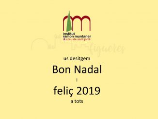 L’equip directiu, en nom dels professors i el personal del centre, us desitja que passeu unes bones festes, juntament amb els vostres, i que tingueu tots un any 2019 ple de prosperitat, pau i llibertat.