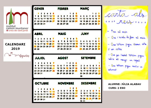 La imatge i la carta seleccionades seran exposades en un calendari d’aquest any 2019, utilitzat pel centre.
