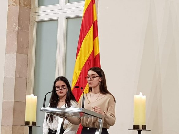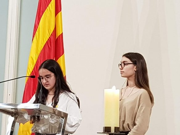 El passat dilluns 28 de gener, les alumnes de 1r de Batxillerat Lola Fuentes i Helena Savall van participar en representació de l’Institut Ramon Muntaner en la Commemoració de les Víctimes de l’Holocaust que es va celebrar al Parlament de Catalunya. En el decurs de l’acte la Lola i l’Helena van poder llegir les conclusions del treball que conjuntament amb una vintena més d’alumnes han estat duent a terme a l’entorn de les persones LGTBI – un dels col·lectius que va patir la persecució i l’extermini per part del règim nazi –. Aquesta activitat s’inscriu en el marc del projecte educatiu que impulsa el Parlament català per recordar les Víctimes de l’Holocaust, en el que enguany el nostre institut ha pogut participar, conjuntament amb altres cinc centres d’arreu de Catalunya.
