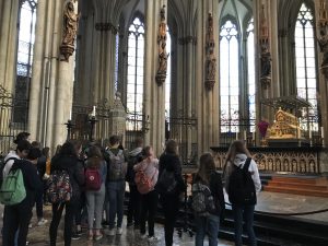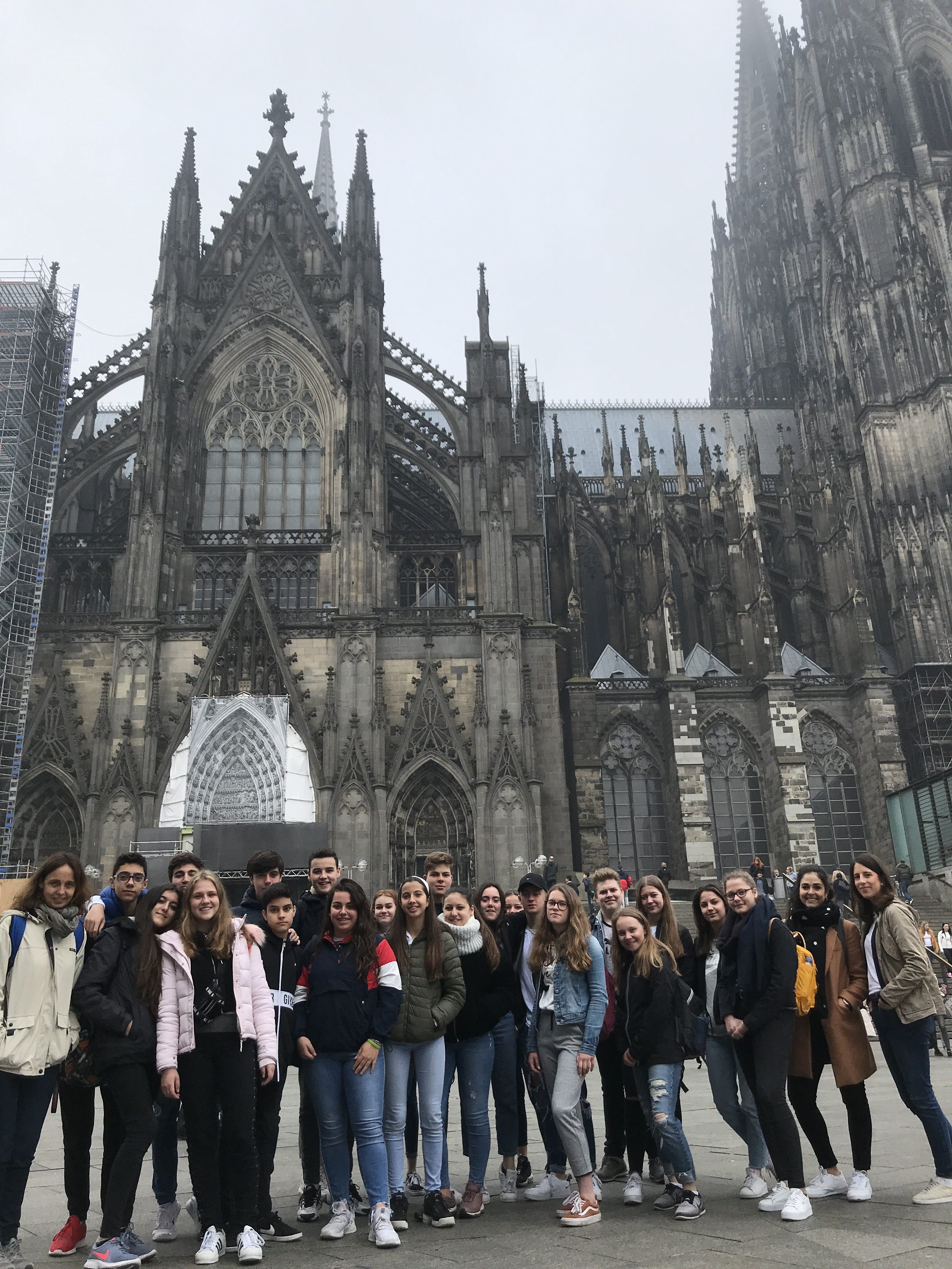 Després d’un cap de setmana en família, els nostres alumnes, acompanyats dels alemanys, han visitat la ciutat de Colònia: el centre històric, l’Alter Markt, el Hohenzollern Brücke, ple de candaus, conegut com el pont de l’amor i la catedral, el monument més visitat d’Alemanya. La visita guiada ha sigut molt interessant i, per fi, sabem perquè les relíquies dels Reis de l’Orient descansen en aquesta ciutat. Finalment hem pujat a una de les torres de la catedral…508 graons!! Demà més!