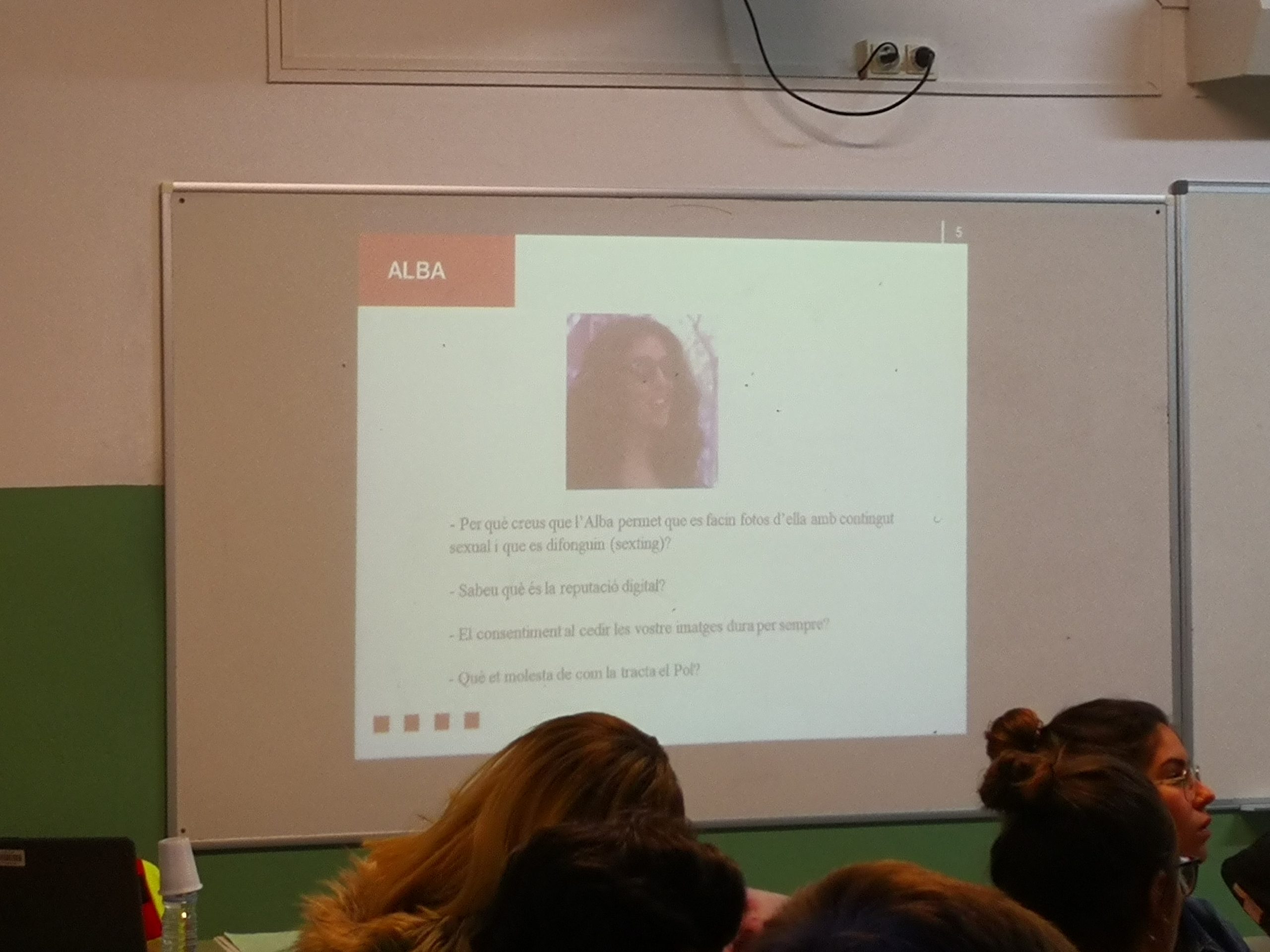 El dilluns 11 de novembre, va venir la Maite a fer-nos un taller a l’alumnat de 1r de TADE. Es va tractar un cas concret sobre difamació de fotos “compromeses” i de temàtica sexual on els adolescents vivien les conseqüències que aquests actes comporten, arribant inclús al suïcidi o depressió. Després es van dividir en grups i van treballar una fitxa que els hi va facilitar la mossa d’esquadra i van acabar fent una reflexió conjunta.