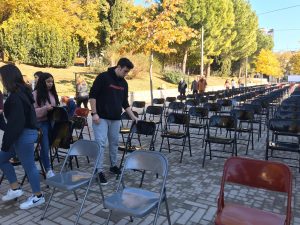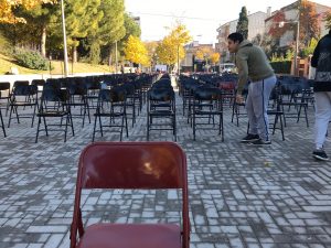 L’alumnat del 4t d’ESO A ha assistit aquest matí al Passeig Nou de Figueres on s’han col·locat 1027 cadires buides per recordar les dones assassinades en mans de les seves parelles o exparelles des del 2003 al territori espanyol. La Safaa i en Bilal han llegit els noms d’algunes de les dones que han estat homenatjades.