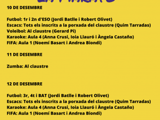 L’alumnat del 3rB ha elaborat un cartell de 2 m d’amplada per 1 m d’alçada amb l’objectiu de participar en el concurs “Pinta la Marató 2019” de TV3. El podeu trobar exposat davant de consergeria.