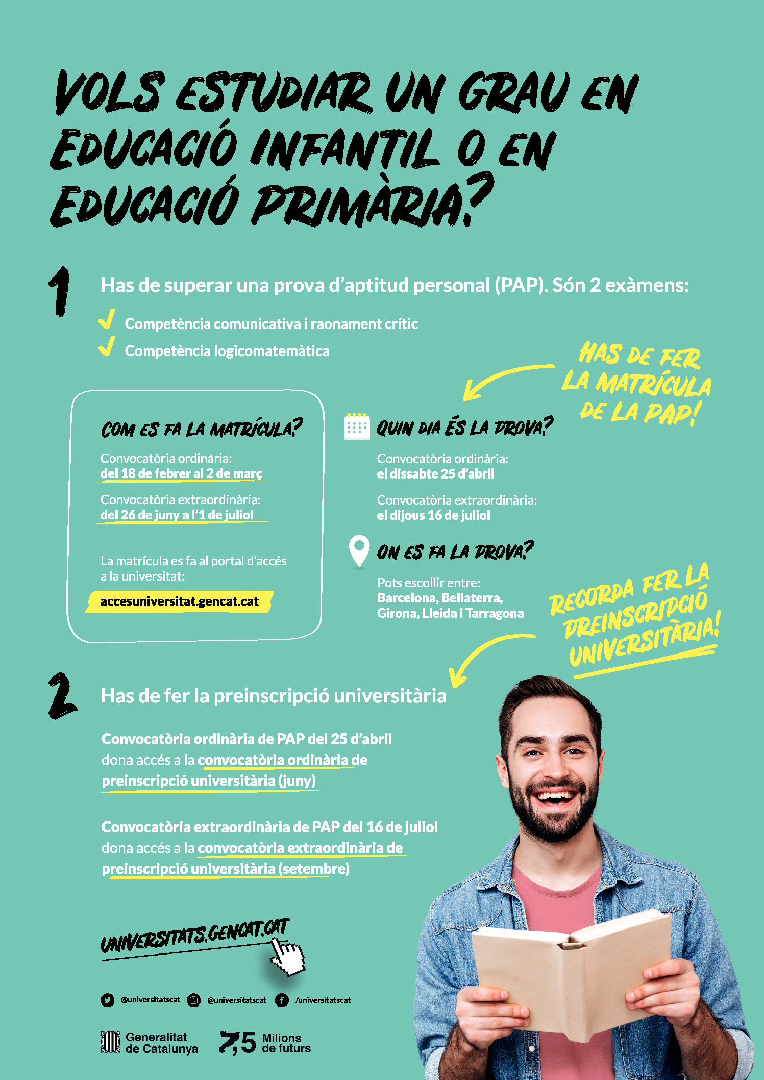 Els interessats en realitzar aquests graus universitaris han de realitzar una prova d’aptitud personal (PAP). La matrícula de la PAP és del 18 de febrer al 2 de març. La prova es realitzarà el 25 […]