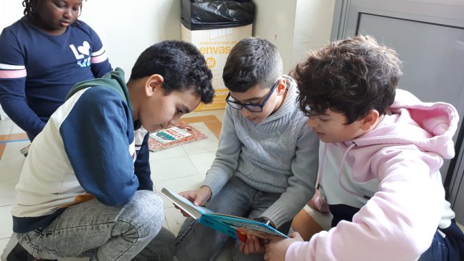 Per novè any consecutiu els nens i nenes de segon de primària de l’ escola Sant Pau reben els joves estudiants del Muntaner per compartir el plaer de la lectura.El grup de 1r d’ ESO els ha deixat en préstec dues maletes plenes de revistes, contes, còmics, novel.les… Junts han començat la lectura que comentaran el mes de març i ja s’ han fet amics.