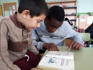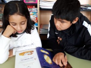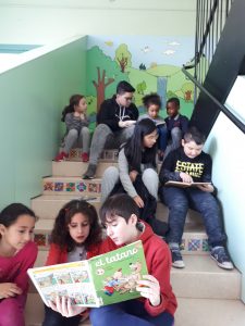 Per novè any consecutiu els nens i nenes de segon de primària de l’ escola Sant Pau reben els joves estudiants del Muntaner per compartir el plaer de la lectura.El grup de 1r d’ ESO els ha deixat en préstec dues maletes plenes de revistes, contes, còmics, novel.les… Junts han començat la lectura que comentaran el mes de març i ja s’ han fet amics.