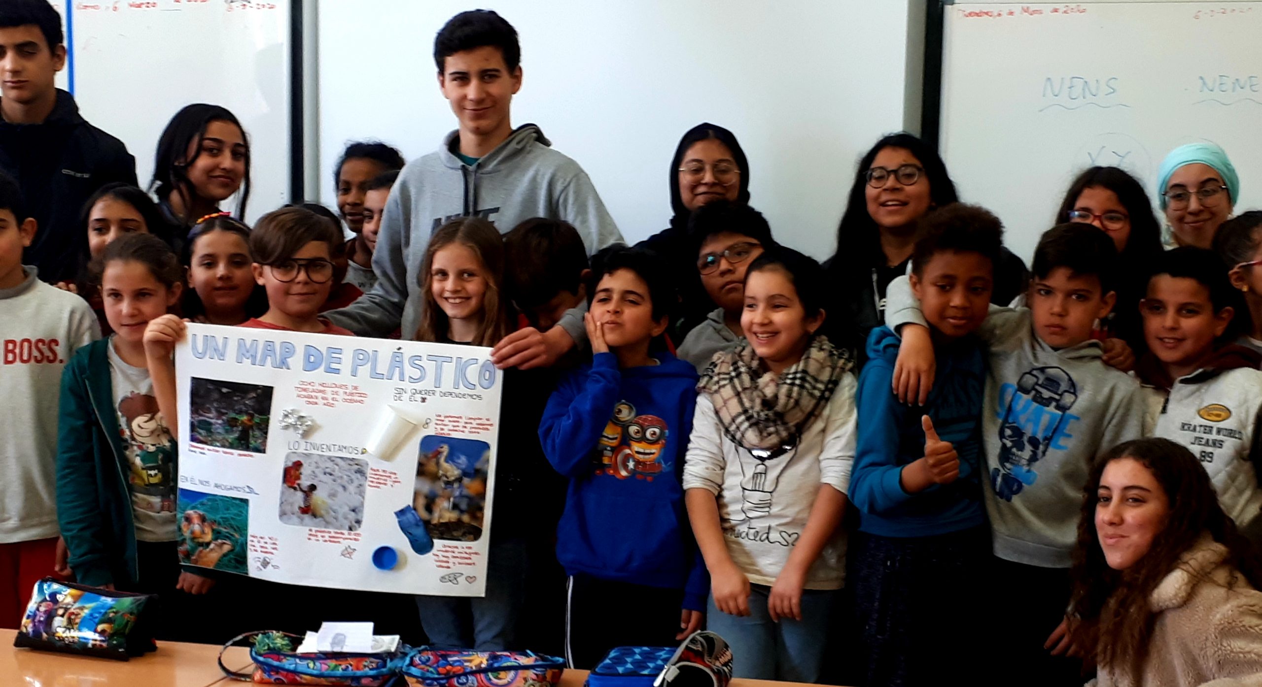 Estudiants de 4t d’ ESO han parlat amb els grups 4t de primària sobre la contaminació a partir de murals comentats, esquetxos teatrals, i fins i tot peces de música rap!