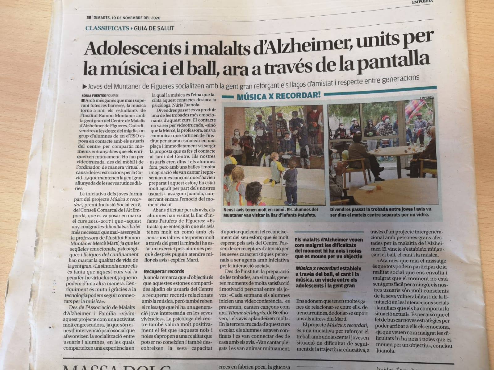 El divendres dia 7 els estudiants de 2n d’ESO – projecte Música x recordar – van posar a prova la seva empatia amb dues visites ben diferents.