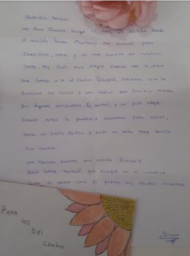“Aprendí que aunque no os conozca bien, os quiero como si fuerais mis abuelos verdaderos. ” Gimena.