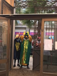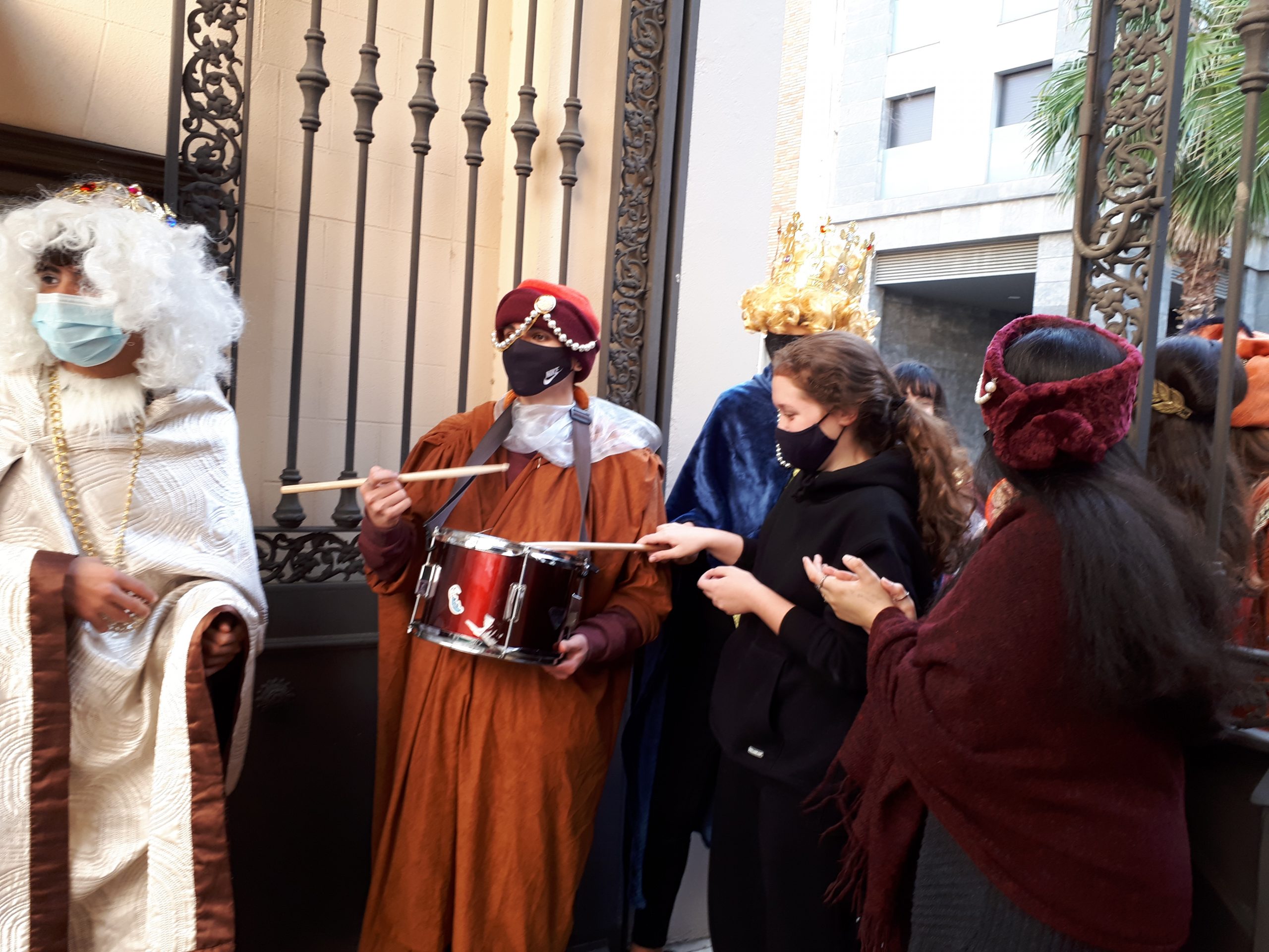 Avui dimecres 16 Ses Majestats del Muntaner i el seu sèquit han arribat a les escoles Salvador Dalí – amb Bel B i fumera – Parc de les Aigües i Asil Vilallonga.