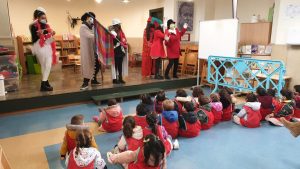 Durant tot el matí han ofert un magnífic espectacle teatral animant tothom – mestres i alumnes – a viure la joia d’ aquestes festes.