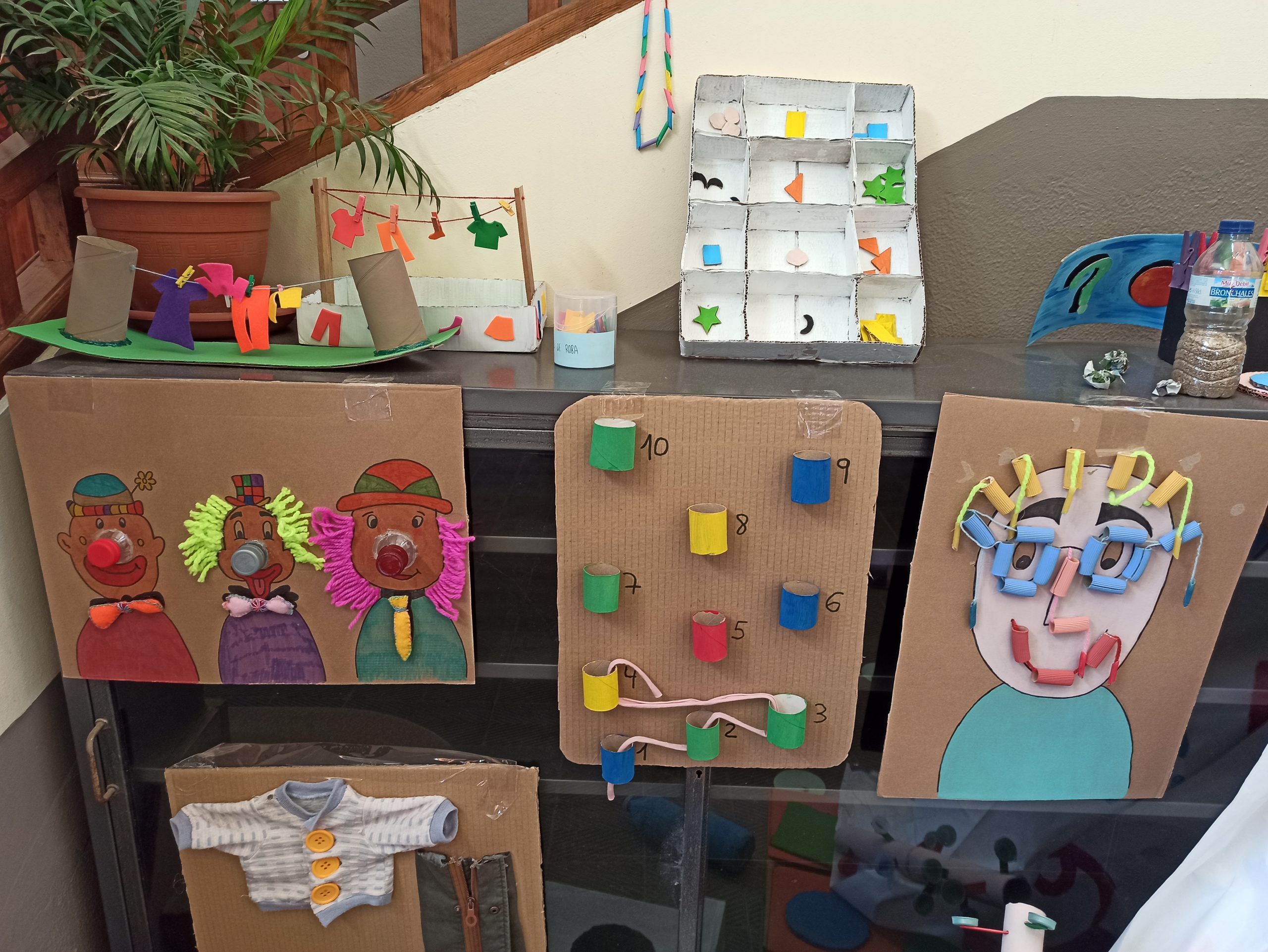 Els recursos elaborats van des d’encaixos, jocs per fer la pinça o jocs on es treballa el desenvolupament òcul-manual com les bitlles i els cercles.