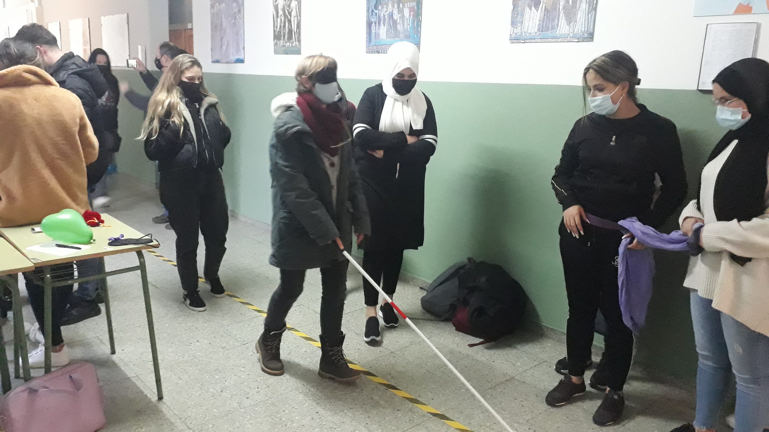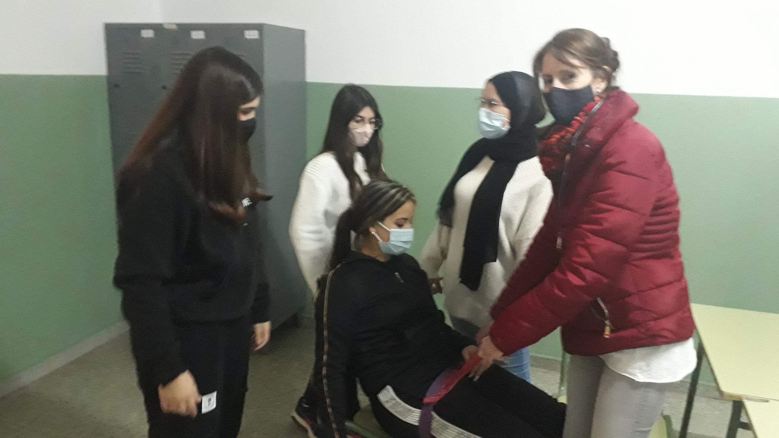 L’alumnat es va repartir en diferents grups amb l’objectiu de treballar amb un recurs diferent dels que tenim al centre. Supervisats per la Sònia van poder utilitzar per exemple la cadira de rodes, els caminadors, la grua, els bastons per persones cegues i el llit articular