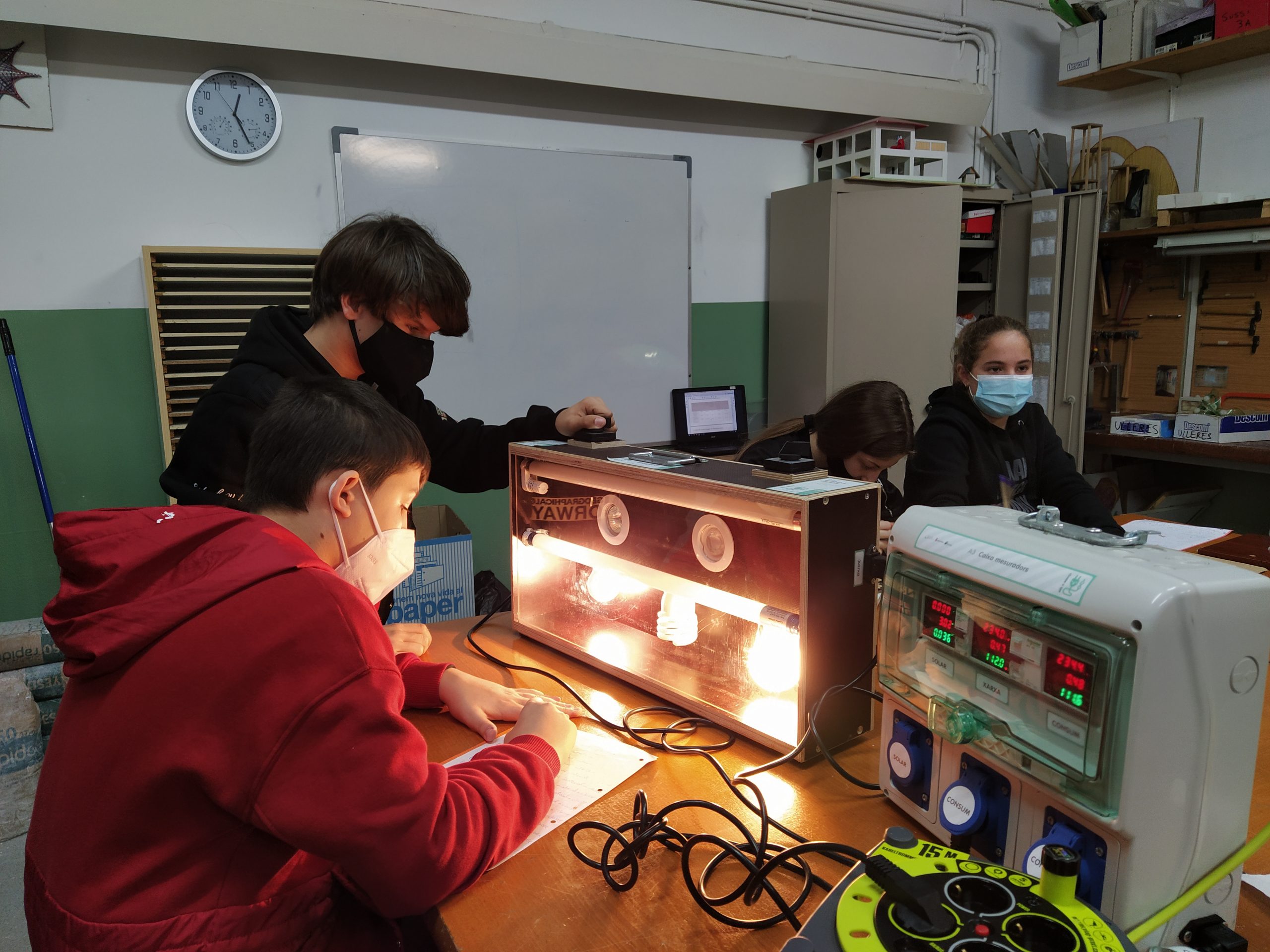 L’alumnat de 2n d’ESO ha realitzat un taller de dinamització sobre l’eficiència energètica, en el qual han pogut comparar el consum energètic de diferents tipus de lluminàries: bombetes, fluorescents i leds.