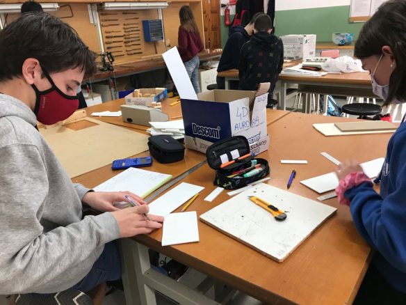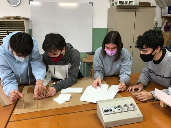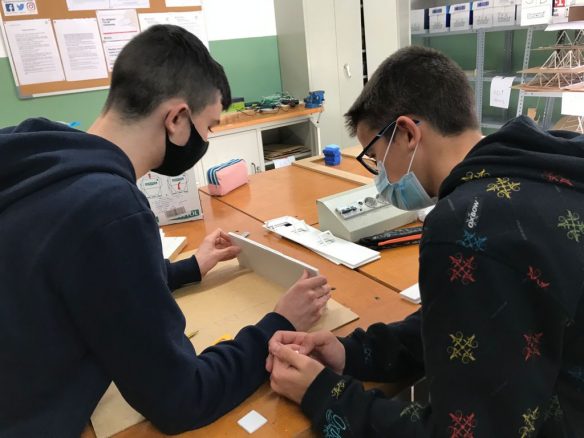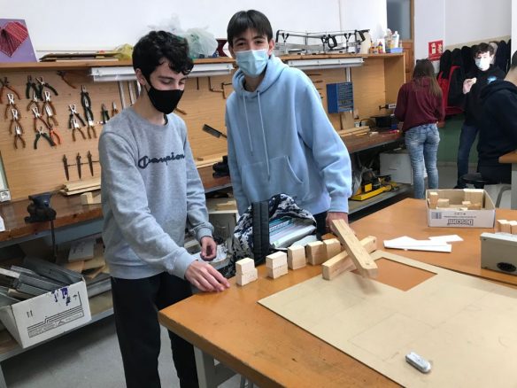 Els alumnes de 3r d’ESO estan construint l’estructura d’un arc i una biga per a complementar els aprenentatges sobre tipus d’estructures