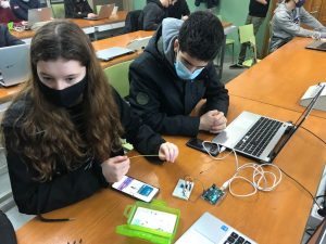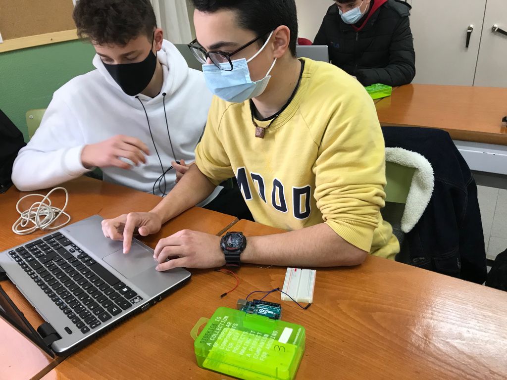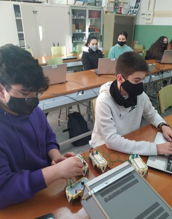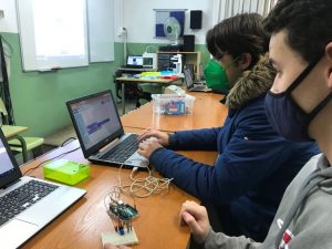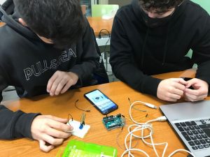 Per últim, l’alumnat de 1r de batxillerat ha estat fent pràctiques d’electrònica amb plaques Arduino i el programa Arduinoblocks.