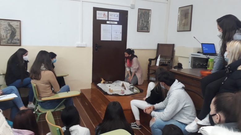 D’una banda, ens va visitar la Cristina Roca, mestra d’infantil de l’escola Waldorf de Vic “La Font”. Ens va explicar la pedagogia Waldorf i va portar una sèrie de materials i recursos que utilitzen a l’escola. Es van fer un parell de dinàmiques perquè l’alumnat entengués millor la pedagogia Waldorf i va explicar un conte animat amb alguns dels materials que va portar.