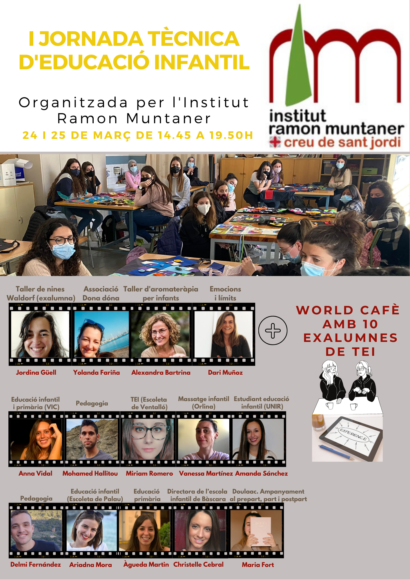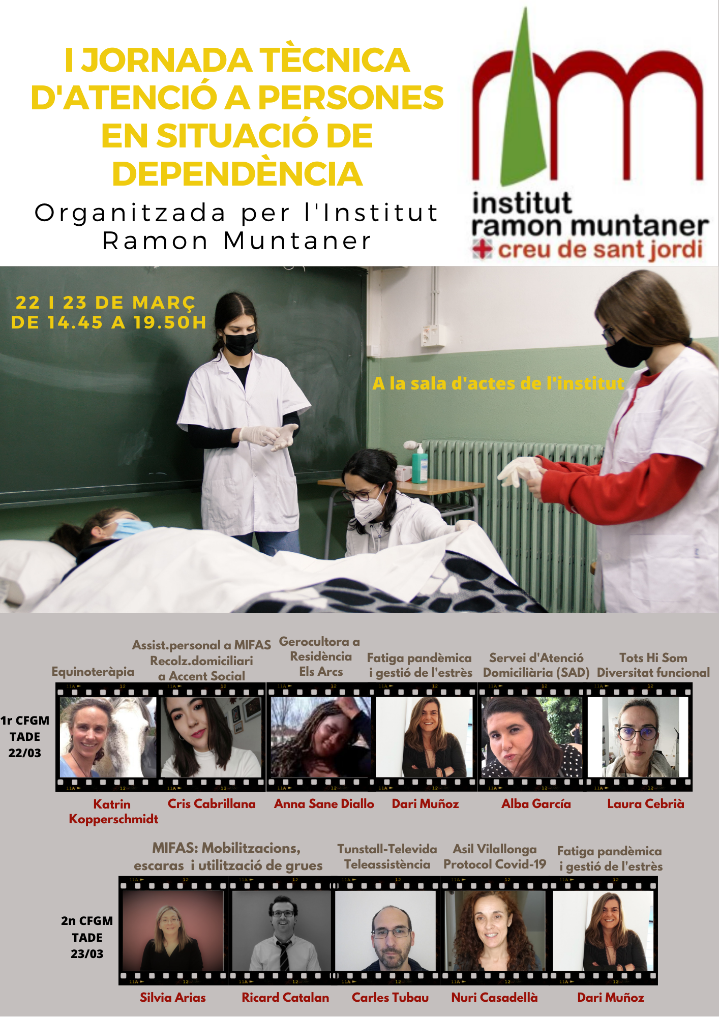 El dilluns 22 i dimarts 23 de març tindrà lloc la I Jornada tècnica d’atenció a persones en situació de dependència.  L’alumnat del cicle formatiu de grau mitjà podrà gaudir de les següents ponències i tallers.