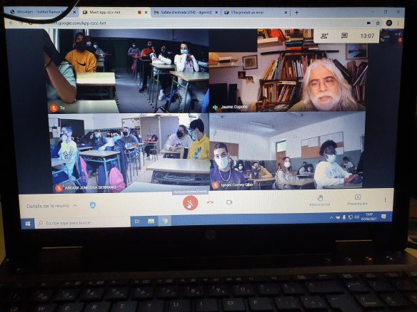El dimecres 7 d’abril passat, els alumnes de 2n d’ESO CDE de l’institut van poder parlar telemàticament amb l’escriptor Jaume Copons a propòsit del seu llibre La closca pelada dels cretins, que han llegit al llarg de la 2a avaluació.