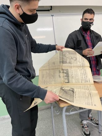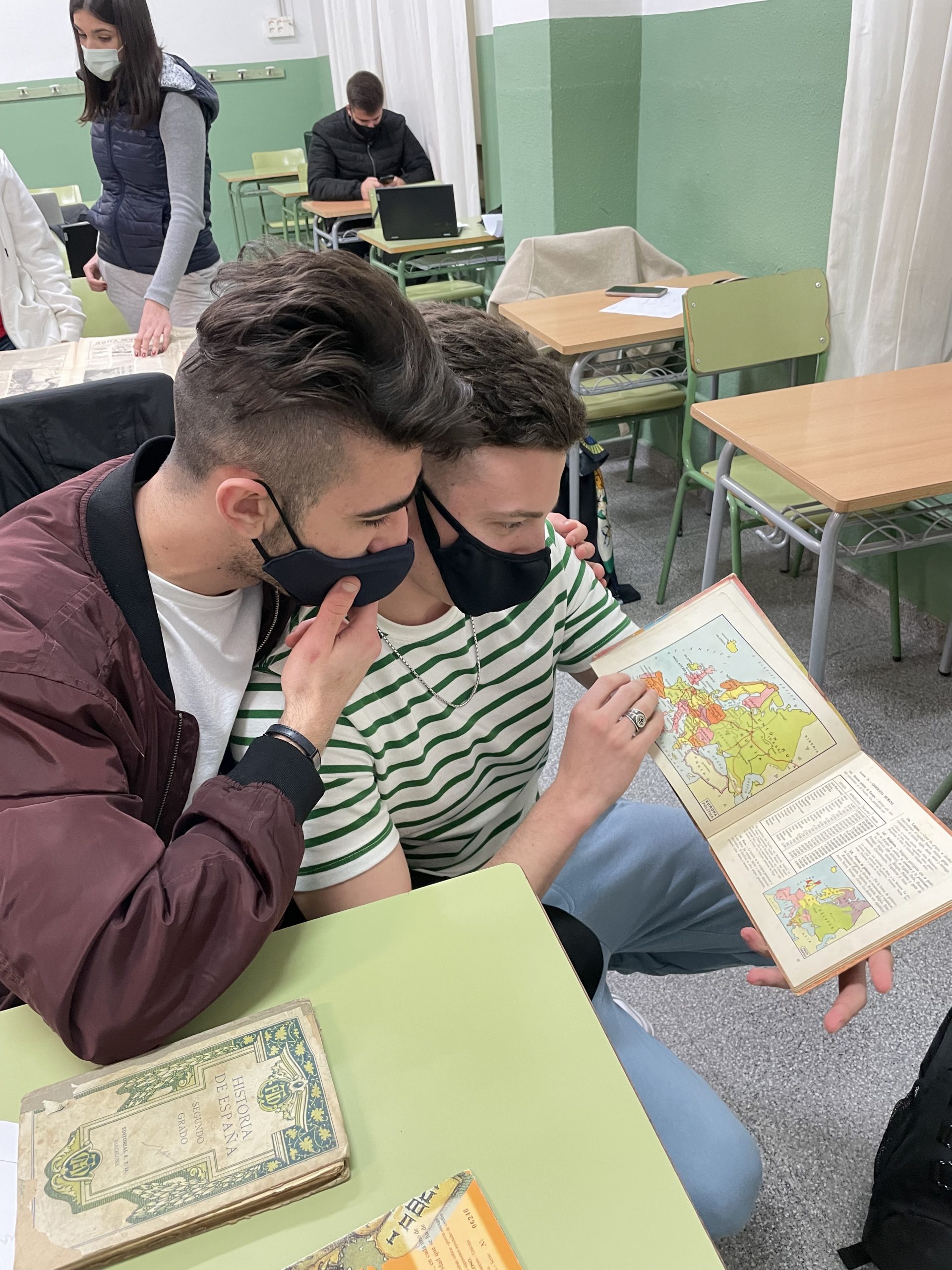 Per l’altra, l’alumnat de 2n de batxillerat nocturn, ha repassat els últims temes del curs a través de fonts històriques. Han pogut comprovar l’adoctrinament de l’escola franquista a partir de llibres de text de l’època; la propaganda política del règim i la censura; l’existència de mesures repressives i, fins i tot, les tècniques publicitàries dels diaris.