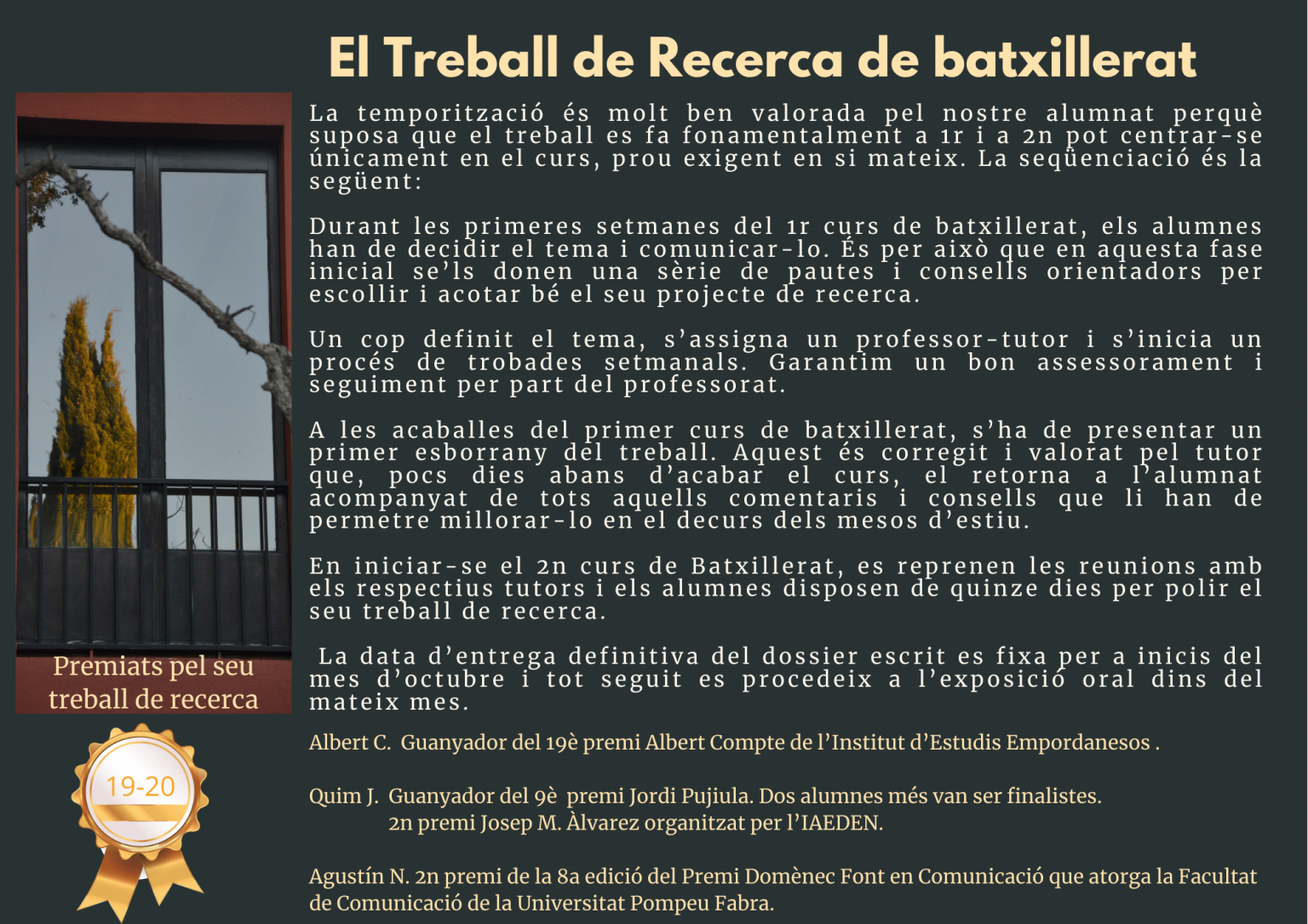 Benvolgudes famílies i futur alumnat de batxillerat,