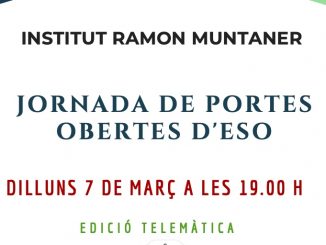 El proper 7 de març tindrà lloc la jornada de portes obertes d’ESO en sessió telemàtica a les 7 de la tarda.