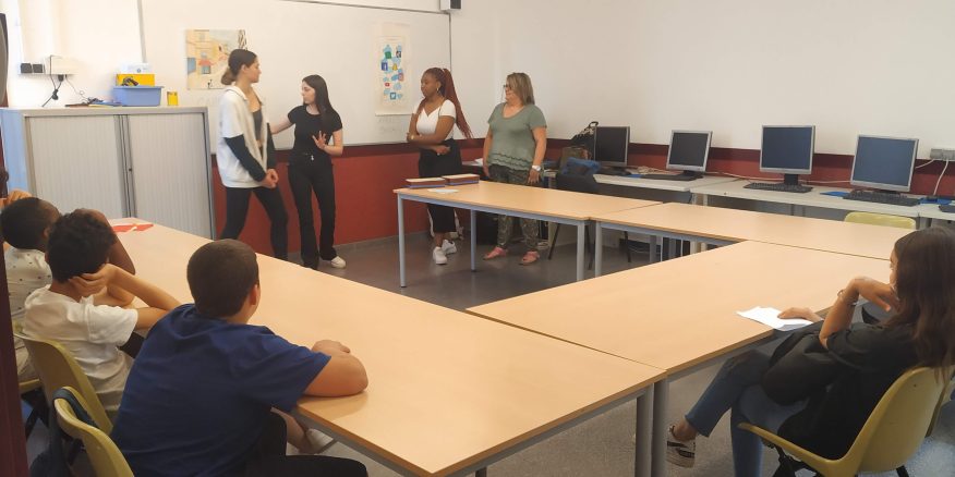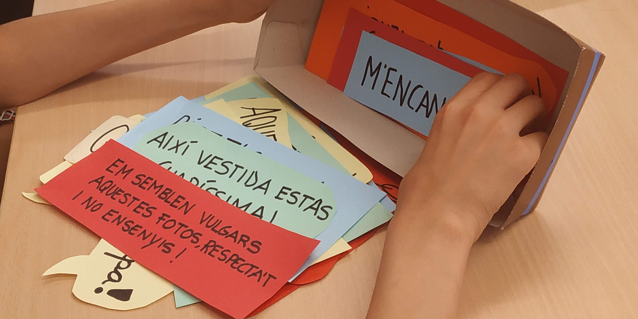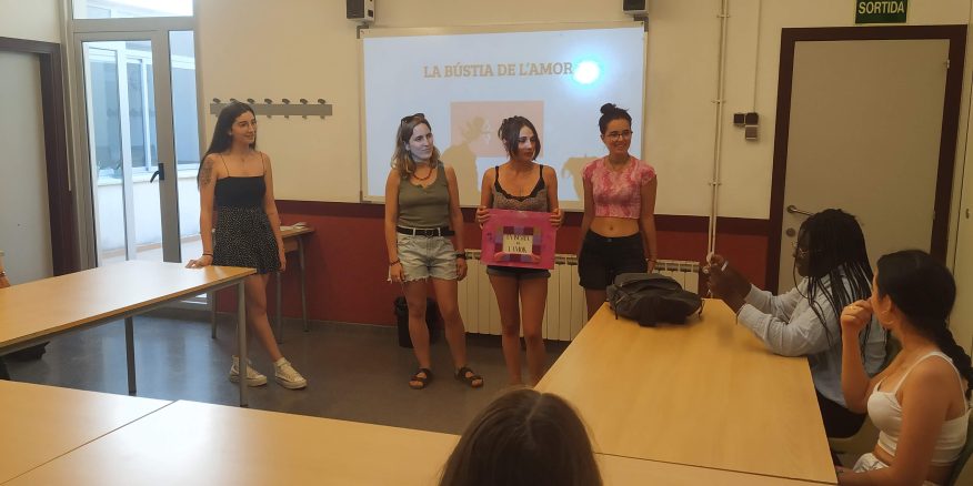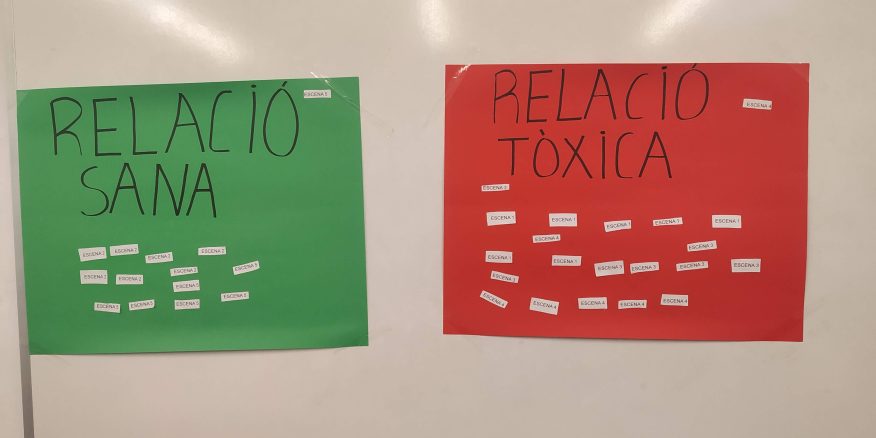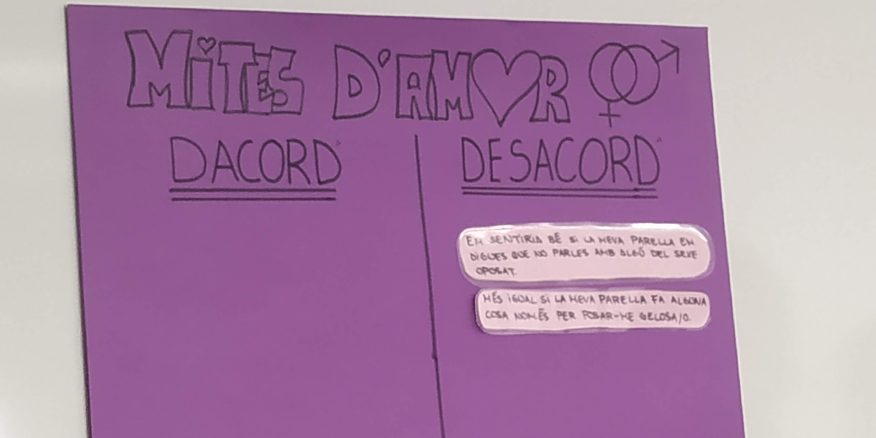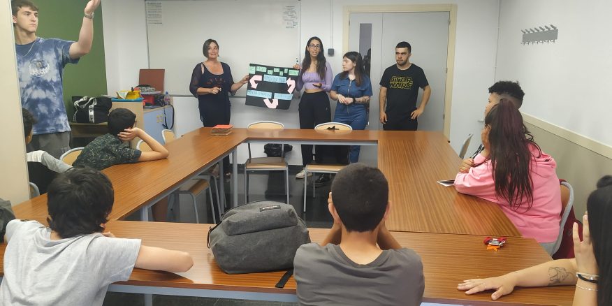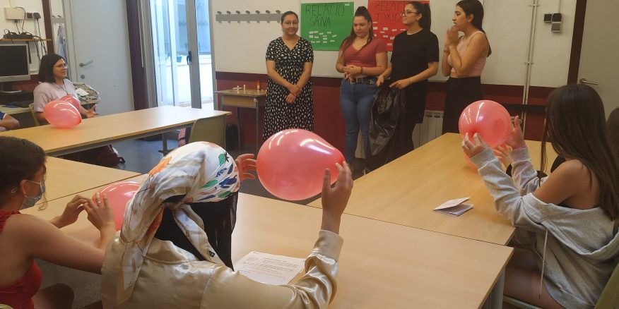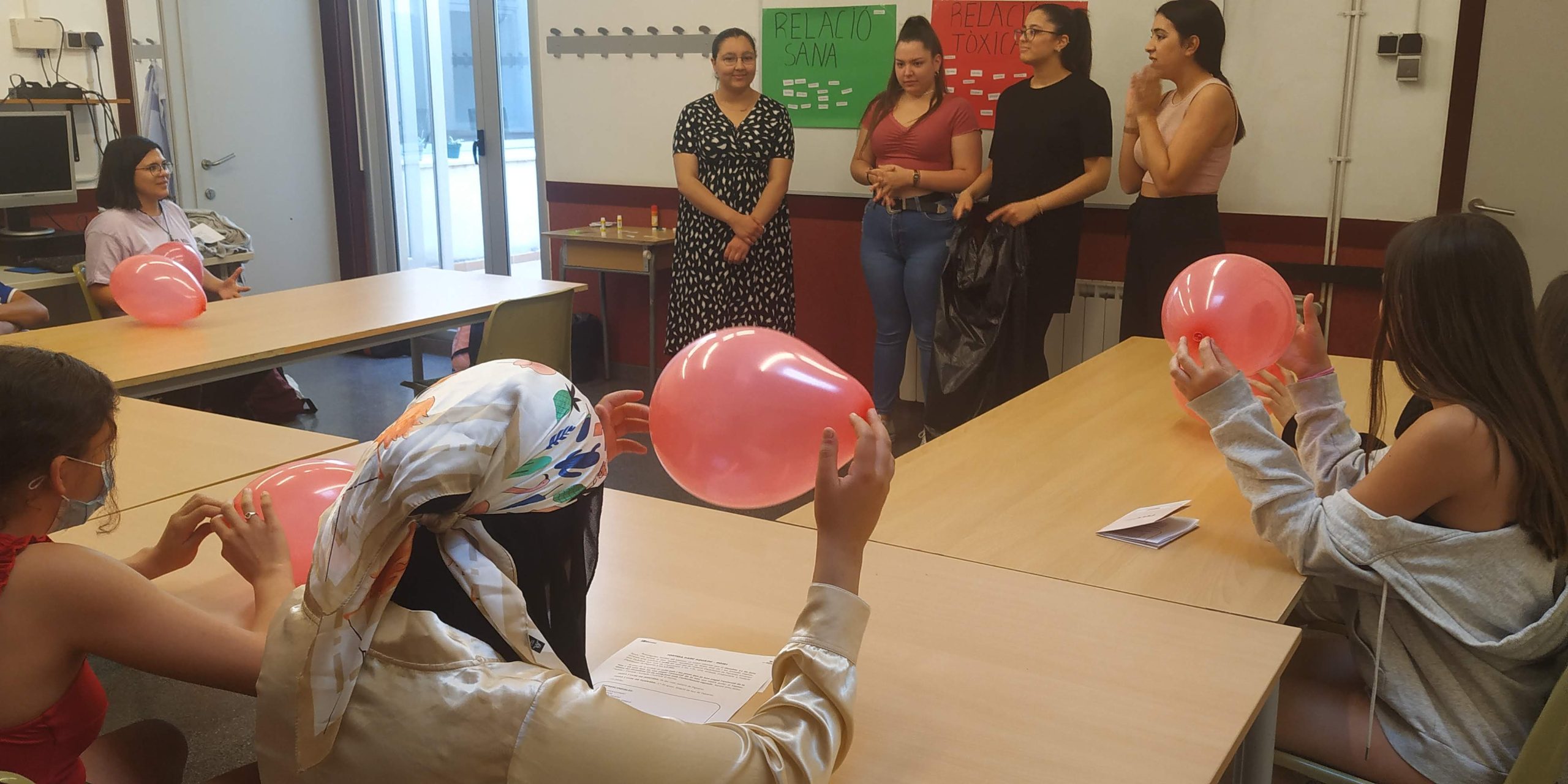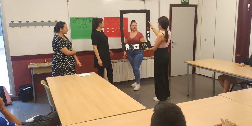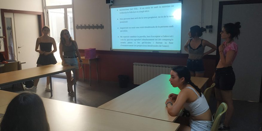 Aquesta setmana l’alumnat de 1r del CFGS d’integració social ha fet una implementació amb nois i noies del Ksameu, a Figueres. En aquest taller han treballat continguts relacionats amb la prevenció i sensibilització vers les relacions tòxiques, la violència masclista i les noves masculinitats, tenint en compte les xarxes socials.