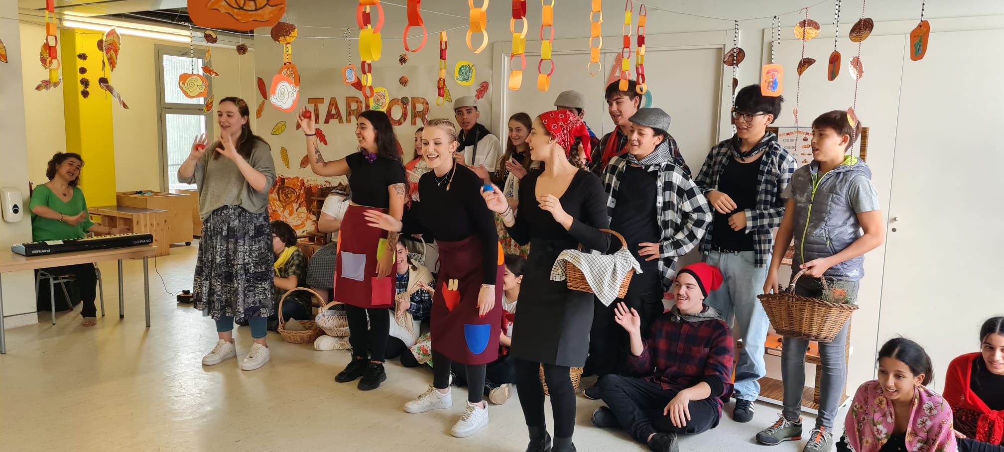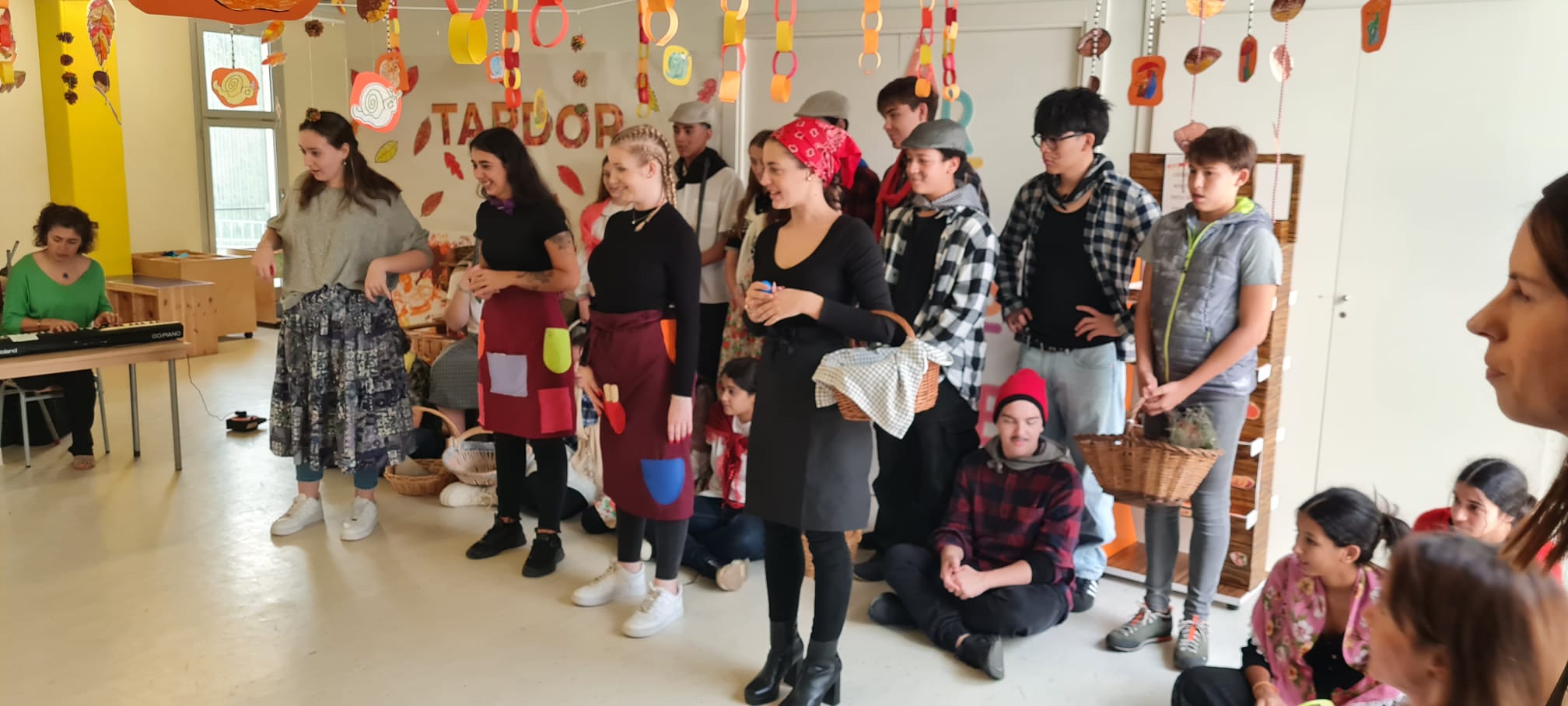 Plegats han cantat cançons, han ballat i han explicat contes de tardor. Una activitat engrescadora tant per grans com per petits que ens ha alegrat la diada a tots.