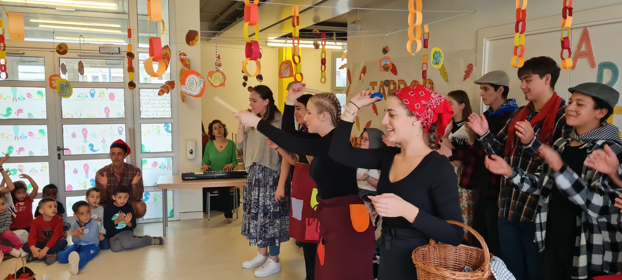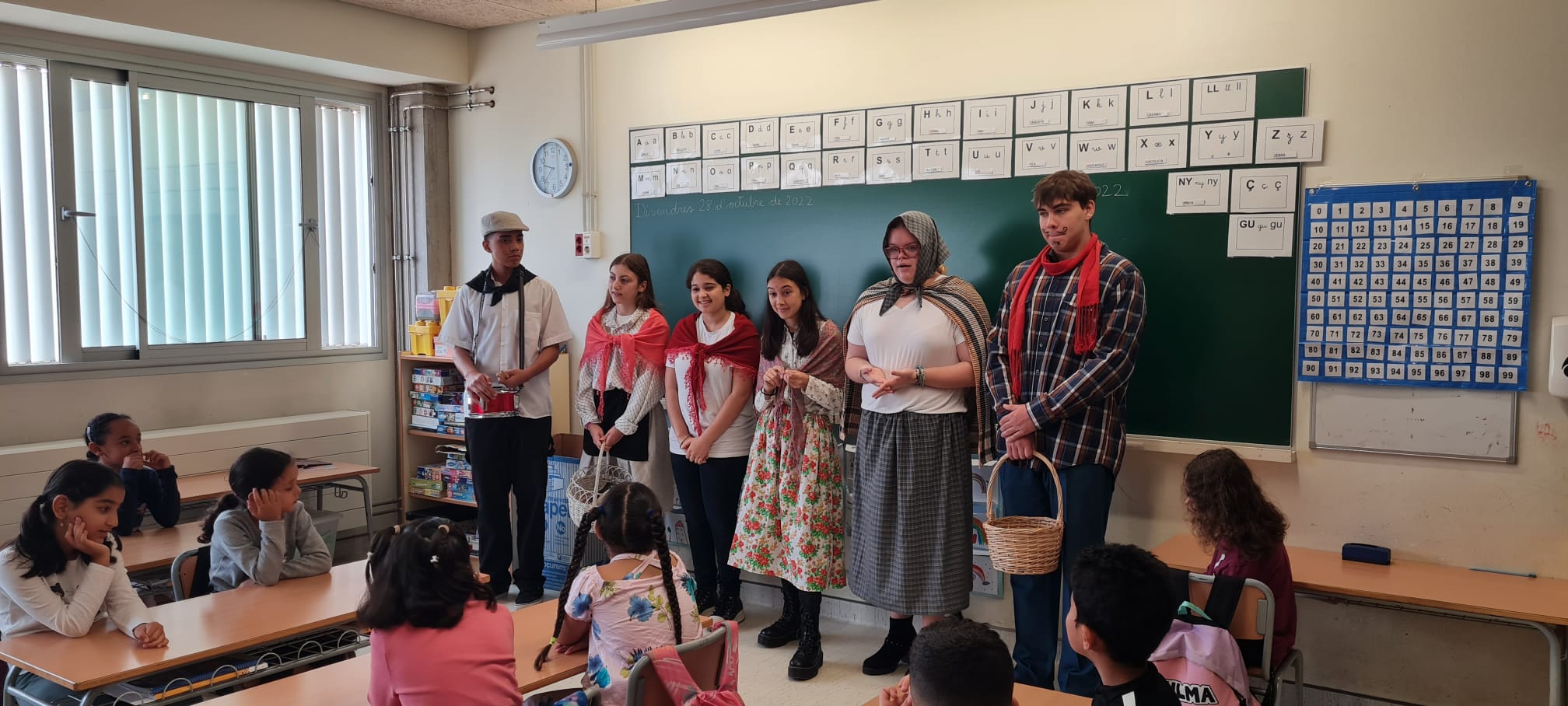 Avui, 28 d’octubre, castanyers i castanyeres de 4t d’ESO i del Grau Superior Ed. Infantil han visitat tots els alumnes de l’ESC Parc de les Aigües.