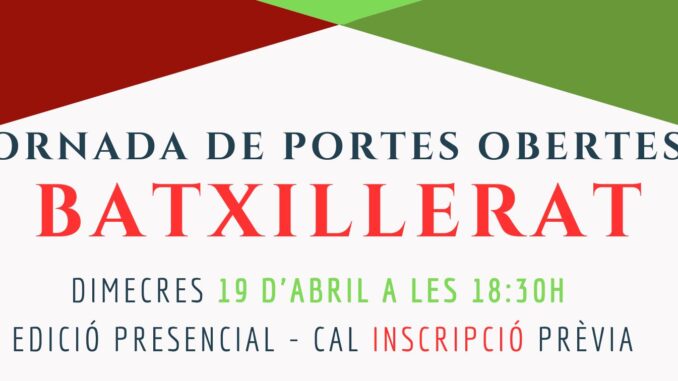 21 d'abril de 2023 administrador batxillerat Comentaris tancats a Presentació jornada de portes obertes de Batxillerat