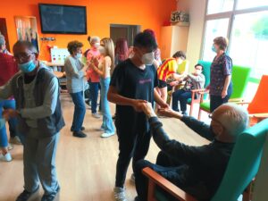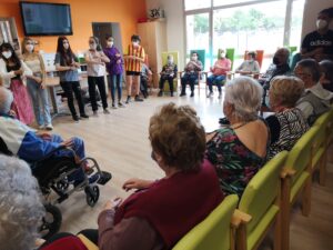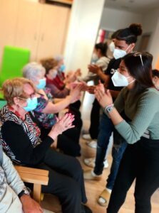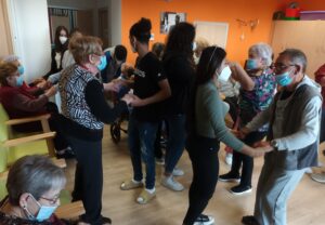 Com cada mes, la música també hi ha estat present. Els alumnes 4t d’ESO, guiats per la mestra en biodança Marta Mora, han ballat amb la gent gent gran al ritme de les veus de Pavarotti, Louis Armstrong, Gloria Estefan, Oques Grasses, Los Manolos…