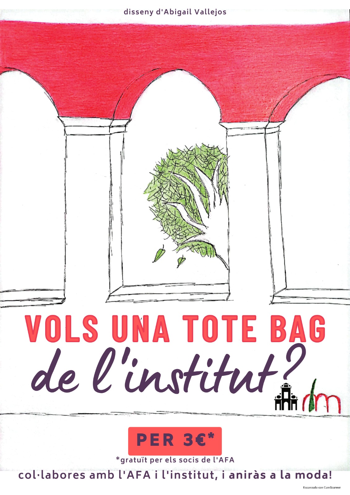 Durant aquest curs l’Associació de Famílies d’Alumnes (AFA) de l’institut ha creat una tote bag amb el disseny guanyador del concurs de Disseny Creatiu Muntaner que va guanyar l’Abigail Vallejos de 3r d’ESO.