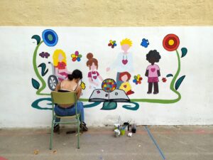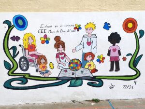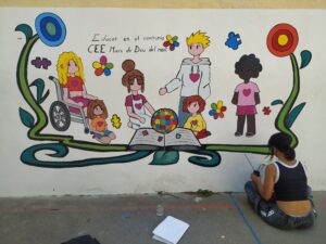 Aquest any els alumnes de l’Optativa de dibuix artístic han realitzat un nou mural a la pista de l’institut. El tema escollit ha estat el projecte Educar en el compromís que, es va realitzar juntament amb el centre d’educació especial Mare de Déu del Mont. En aquest projecte els alumnes de l’institut creaven activitats educatives per compartir amb els alumnes del centre Mare de déu del Mont. El disseny del mural és de l’alumna Oneyda Vencosme i ha estat pintat per els alumnes de l’Optativa.
