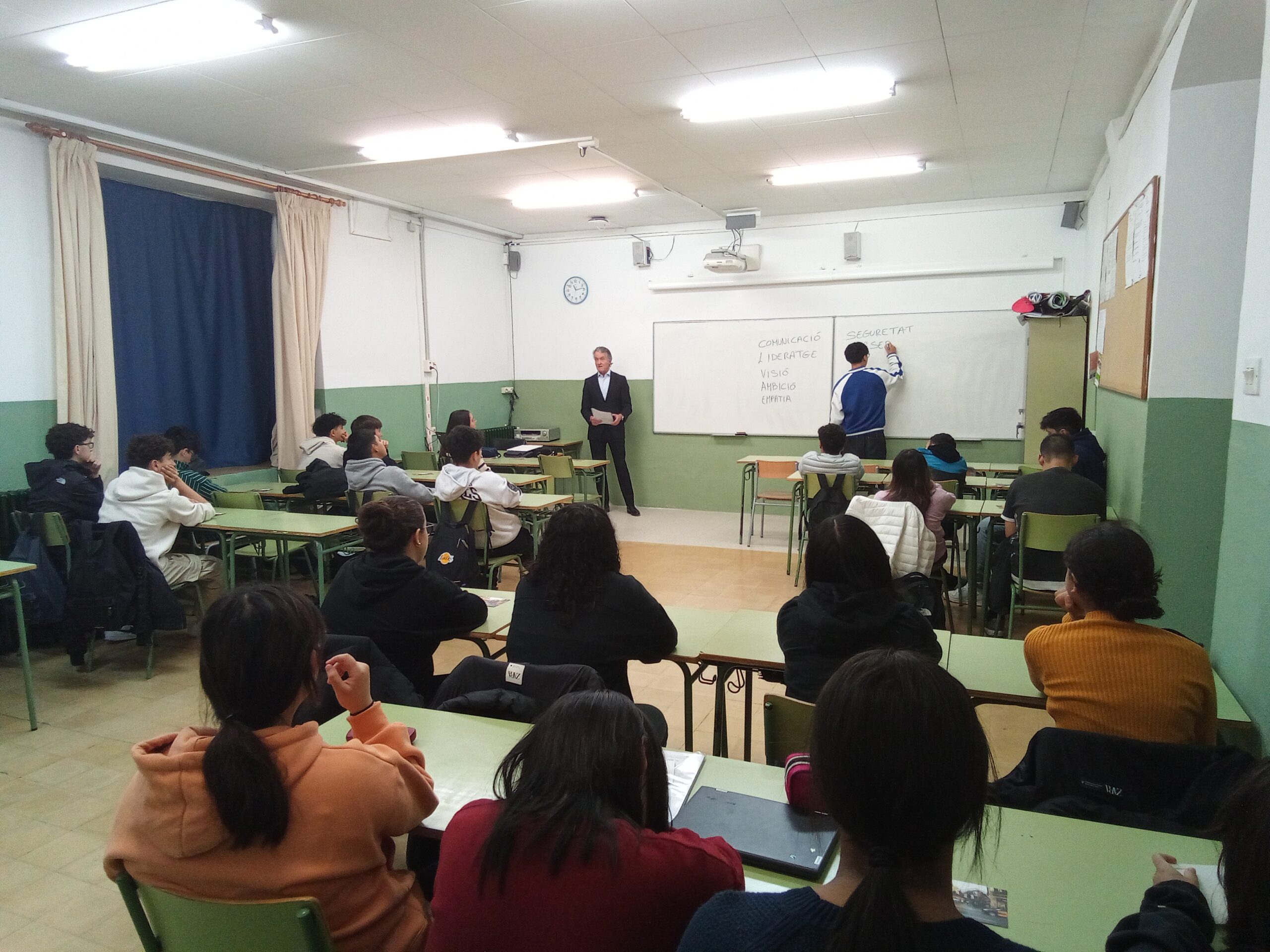 Aquest matí ens ha visitat en Carlos Galcerán, administrador de l’empresa Cogesa, per debatre una estona amb l’alumnat de 1r de BAT que cursa funcionament de l’empresa. La sessió ha permès aproximar als alumnes al món empresarial i conèixer de primera mà com és el dia a dia d’un empresari.