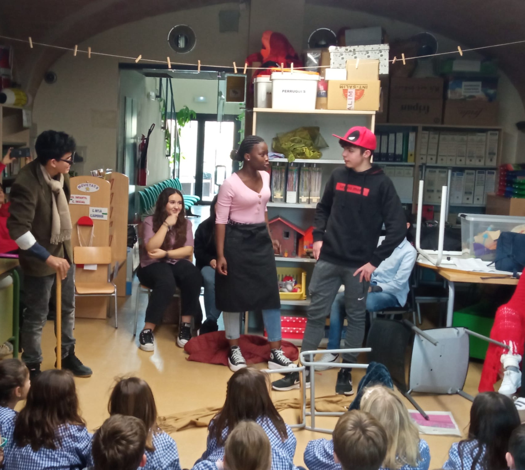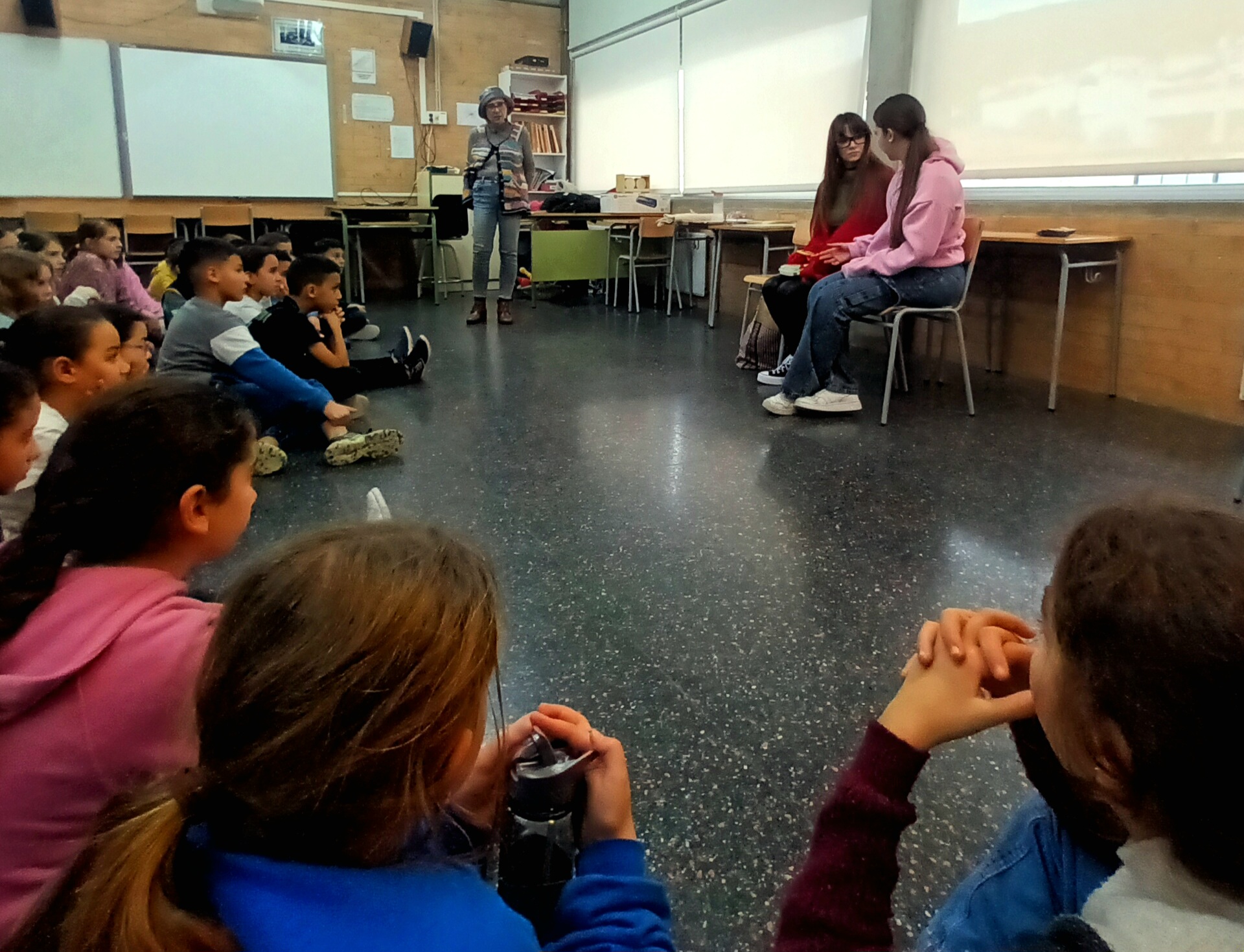 Més de 800 nens i nenes de de 3r a 6è han gaudit de l’espectacle que alumnes de 4rt ESO i Cicles Formatius de TADE del Ramon Muntaner han interpretat amb encert i sensibilitat. Una iniciativa formativa original, dirigida per Bel Bellvehí, que promou l’empatia, el respecte i l’estimació per la gent gran.