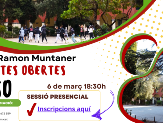 El proper 6 de març a les 18:30h tindrà lloc la jornada de portes obertes d’ESO. Per assistir-hi, cal inscriure’s prèviament a través de l’enllaç.