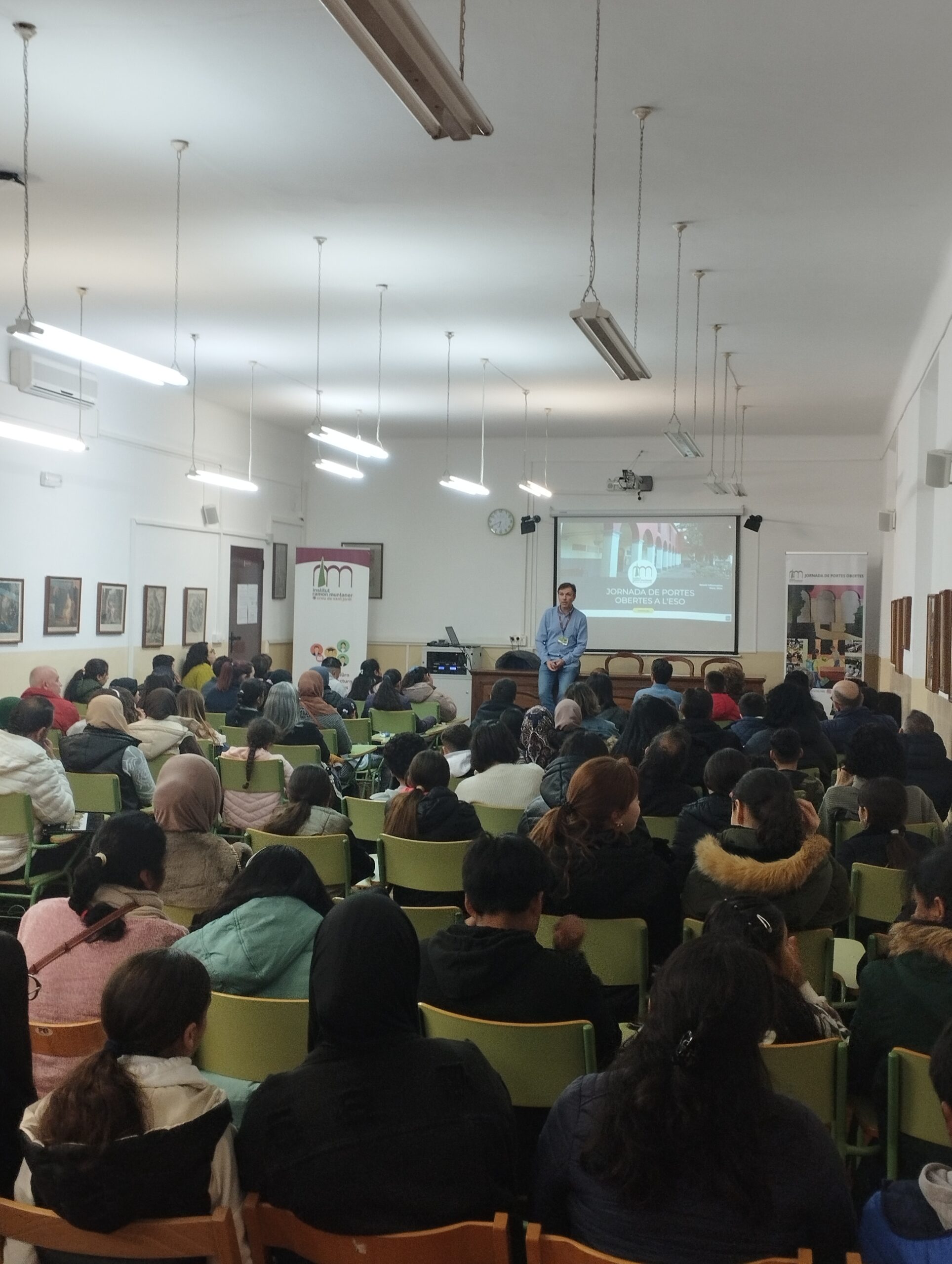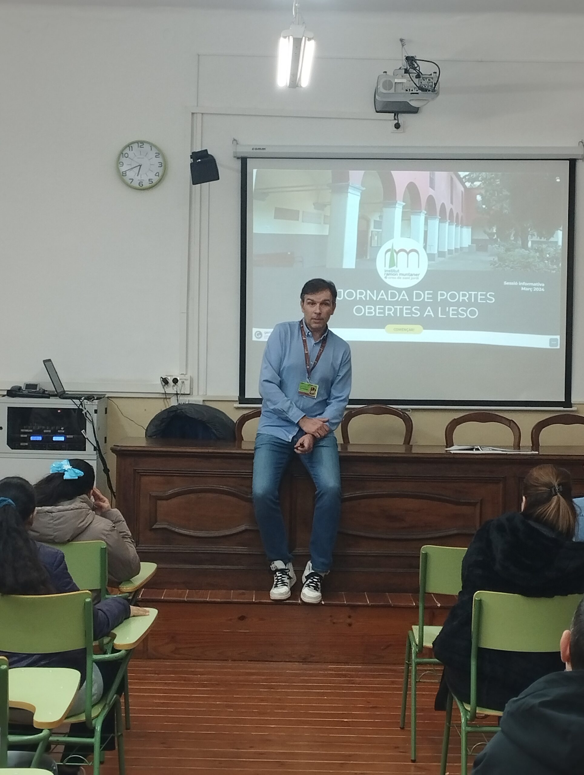 Ahir a la tarda va tenir lloc la jornada de portes obertes a l’ESO. Més d’un centenar de persones van omplir la sala d’actes de l’institut per venir a conèixer el funcionament del centre i tots els projectes que es duen a terme al llarg de l’etapa de l’educació secundària. Hi van intervenir el director, el cap d’estudis i els professors responsables dels projectes d’enriquiment i d’aprenentatge i servei, entre d’altres.