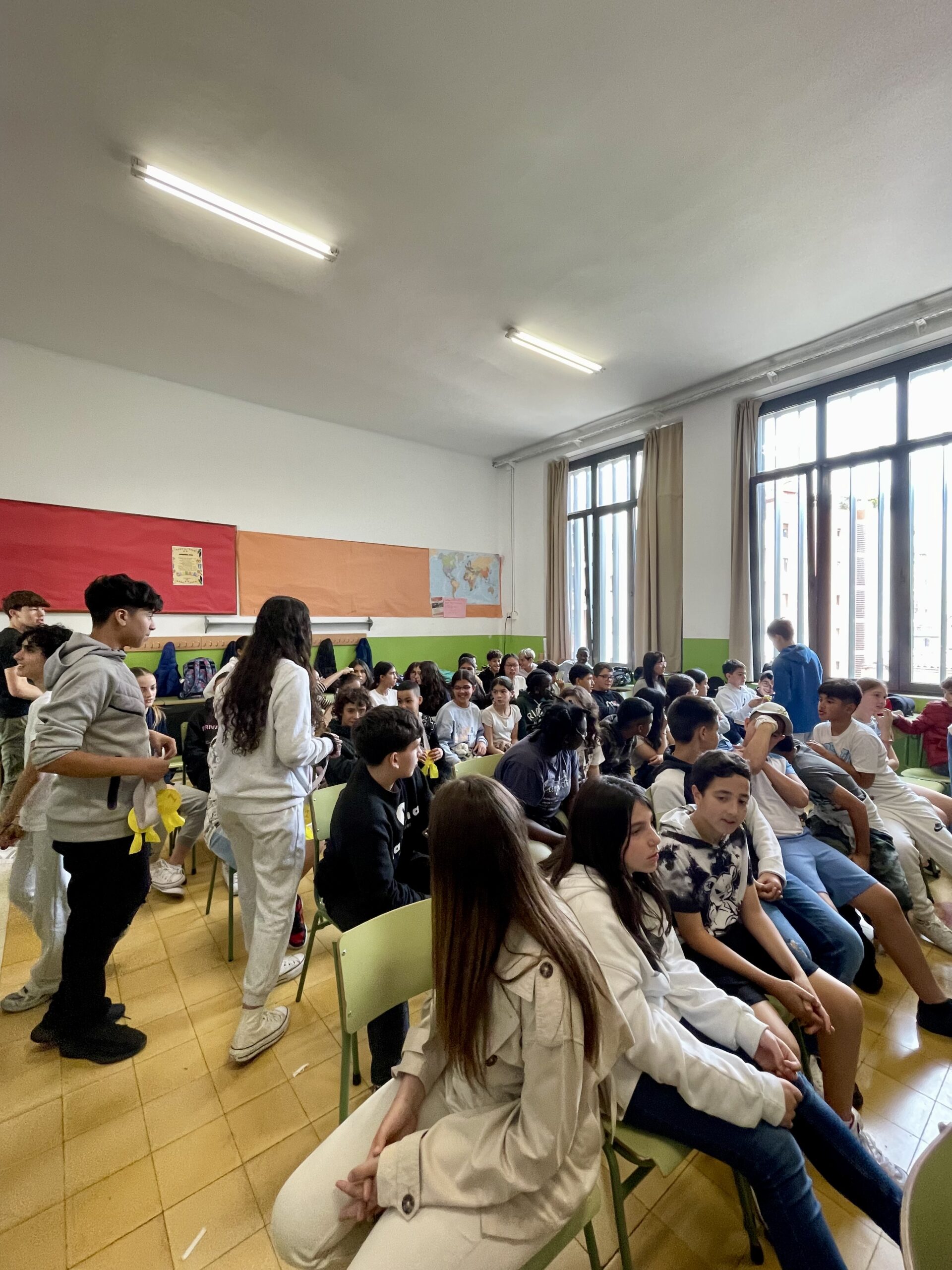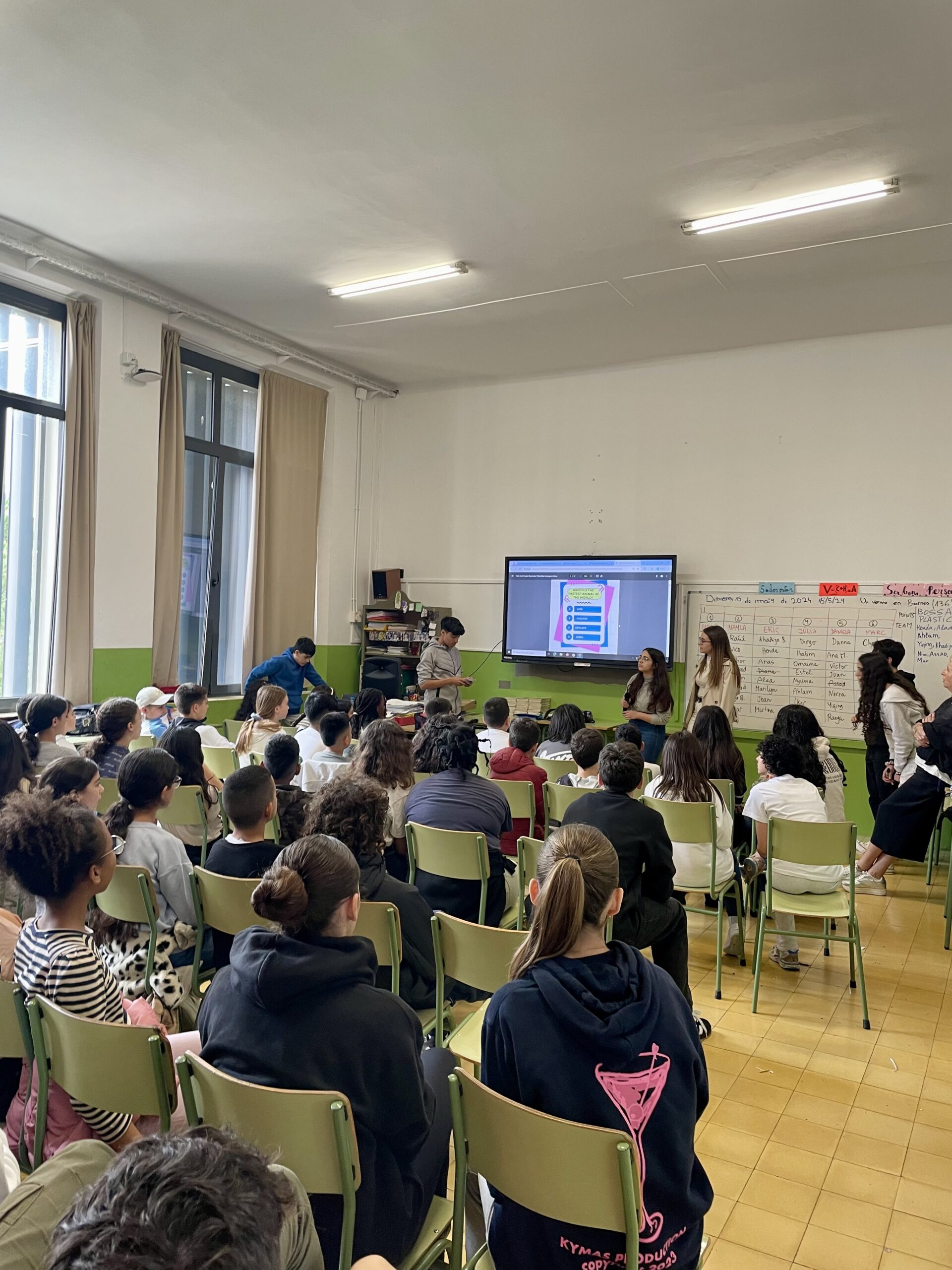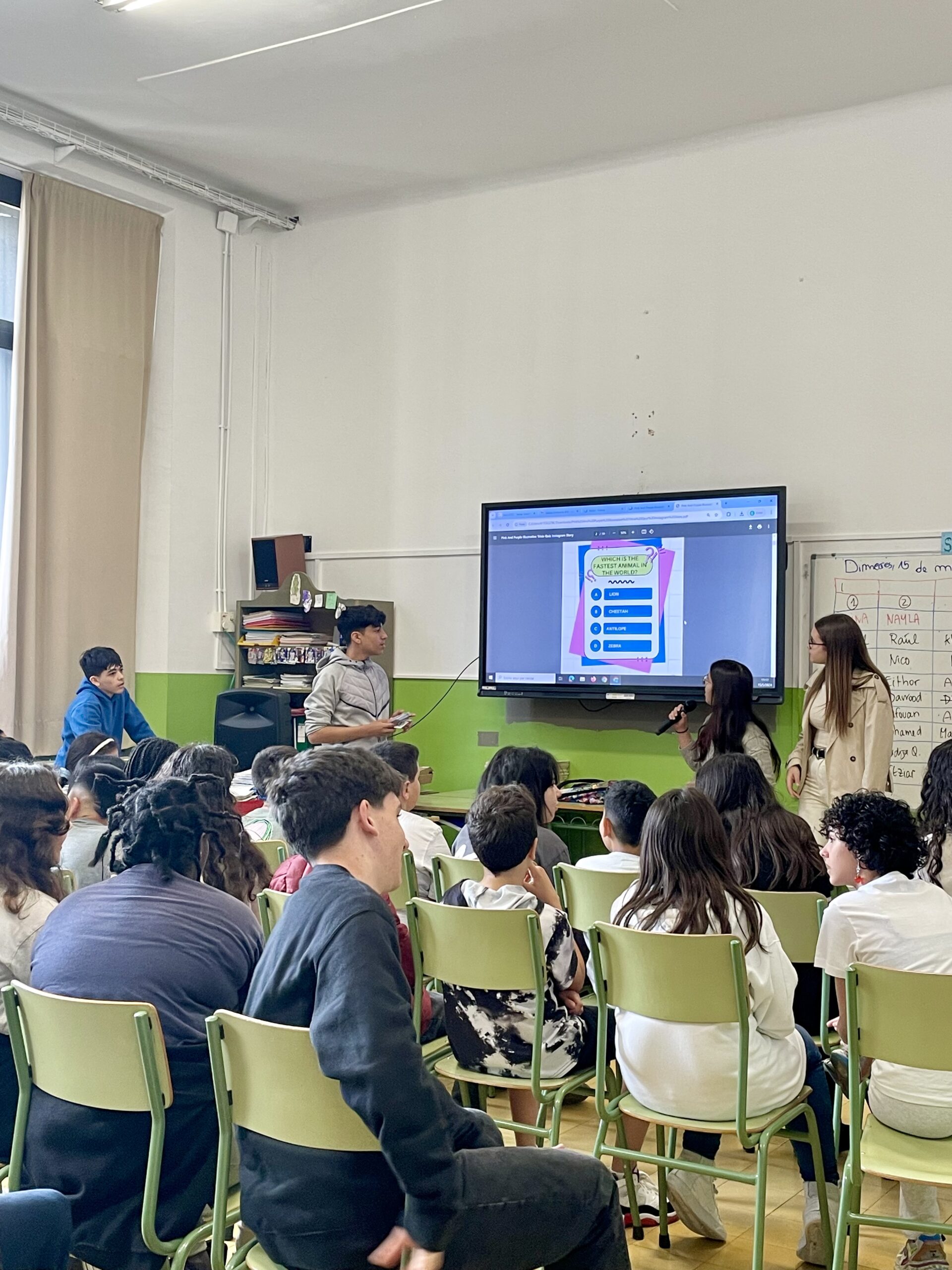 El passat 15 de maig, els alumnes de 3r d’ESO, van tornar a trobar-se amb els alumnes de 6è de l’escola Sant Pau per seguir amb el projecte d’anglès que vam començar el passat mes de desembre. Amb aquest volem potenciar la comunicació en anglès. Així doncs, aquest cop hem jugat a un ‘Quiz show’! Hem fet 6 equips i hem respost moltíssimes preguntes. Finalment, hem donat unes medalles als guanyadors. Ens ho hem passat molt bé!