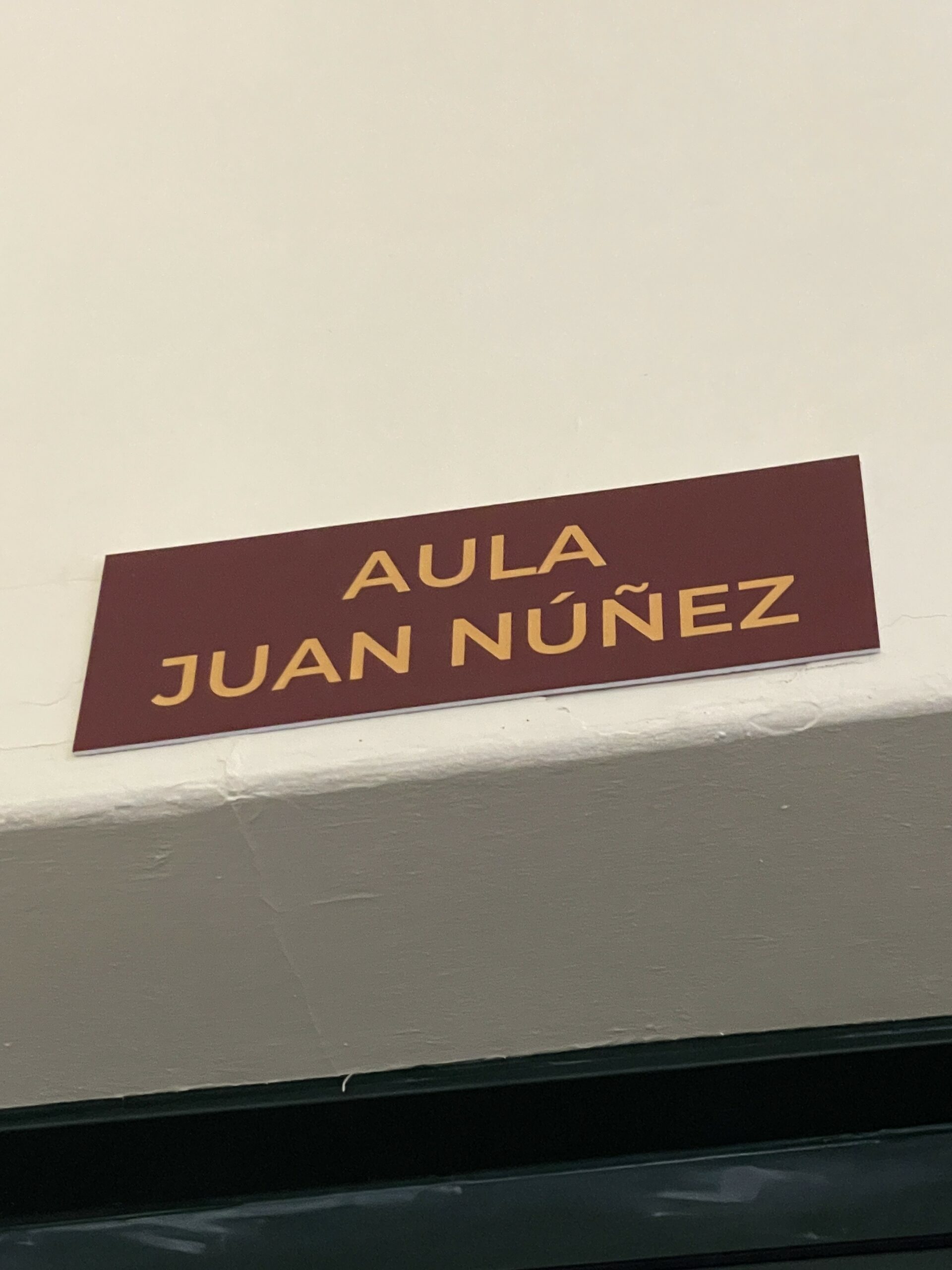 La Laia ha fet el treball de recerca sobre aquest professor de dibuix que va treballar al nostre institut entre 1905 i 1932. La proposta del canvi de nom de l’aula era un dels objectius del seu TdR titulat “Juan Núñez. Vida i obra” un treball on, a més de fer una exhaustiva recerca biogràfica, també ha analitzat l’impacte de la seva innovadora pedagogia a l’Escola Empordanesa (Marià Baig, Ramon Reig, Lluís Vayreda, Antoni Pitxot), la seva relació amb Dalí i, el més important, la seva vessant artística, localitzant fins a 39 obres, inèdites fins fa uns mesos, de les quals n’ha fet un estudi iconogràfic.