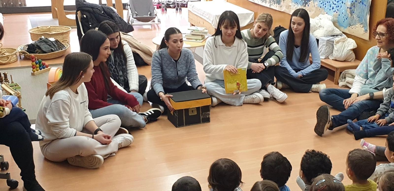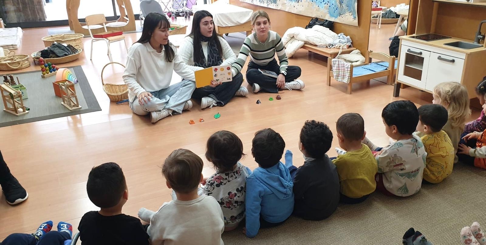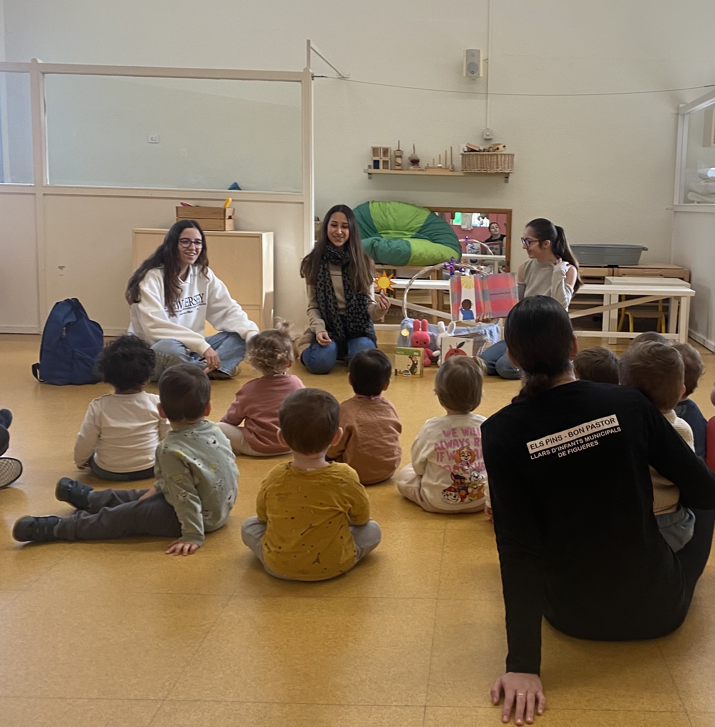 Dimecres passat les alumnes de 1r d’Educació Infantil van explicar contes als infants de les llars Municipals de Figueres. El projecte es va iniciar a l’octubre amb una visita a la sala infantil de la biblioteca Fages de Climent de Figueres, va continuar amb l’assistència a diferents hores del conte per aprendre recursos i observar sessions de professionals i, a partir d’aquestes, generar idees per fer la seva implementació. A la sessió de contes a les llars les alumnes van tenir l’oportunitat de compartir una estona amb els infants, presentant-los els contes dels lots preparats per l’equip de la Biblioteca. Esperem que aquest projecte engresqui a les famílies a visitar la Biblioteca i fomentar l’hàbit lector dels infants.